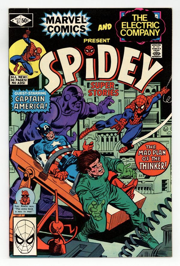 "The Ringer's Big Rip-Off!" Story by Jim Salicrup and Steve Grant. Art by Winslow Mortimer, Ricardo Villamonte, and Mike Esposito. Spidey battles the sinister Ringer. Includes the 1-page features "Rounding up the Ringer," "Who is Captain America?,"and "Wit of the Webslinger." Includes the back-up tale "The Movie Menace!" Guest-starring the cast of the Electric Company. Plus, Spidey and Captain America star in "Master Plan of the Thinker!" Featuring the clip and collect Spidey Stamp: #35 The Ringer. Cover price $0.50.
