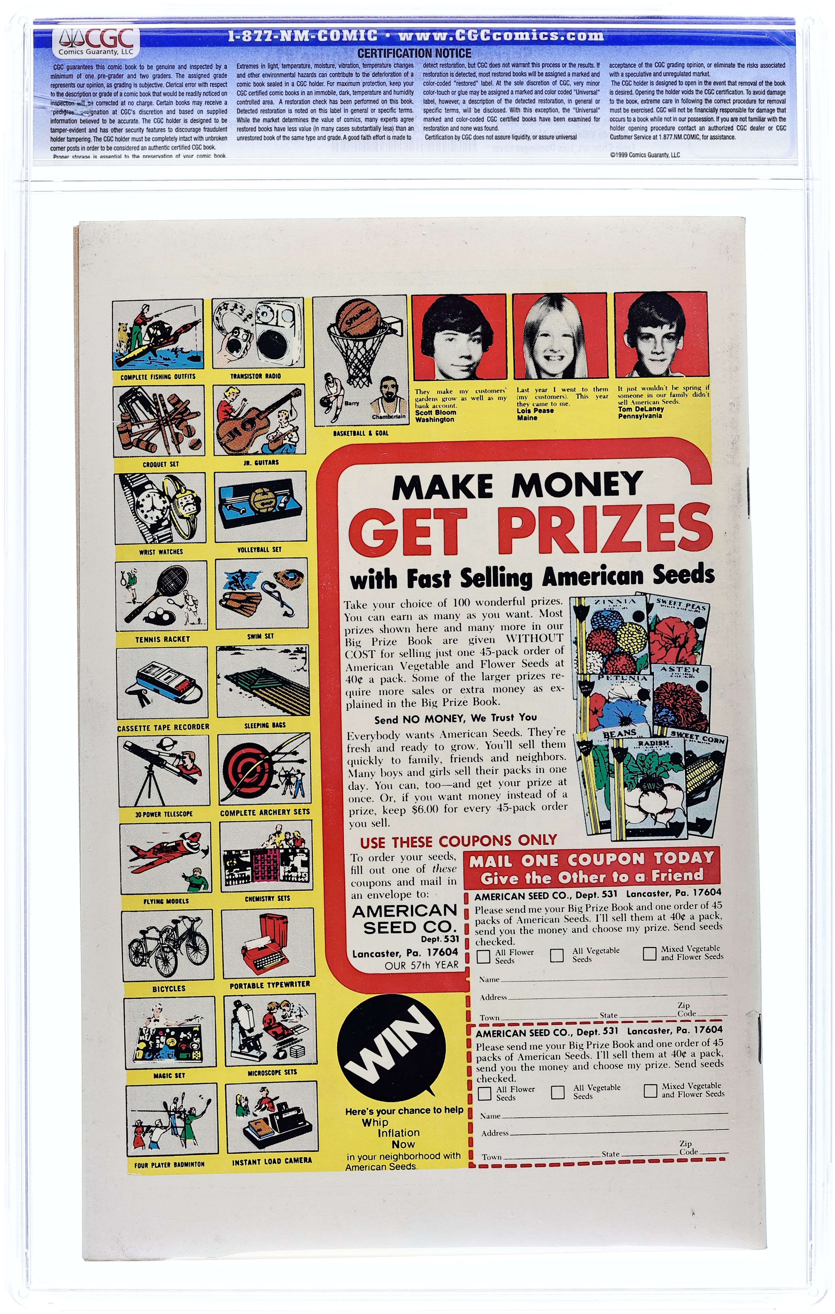 Featuring: 3 page Destiny framing sequence "I am Destiny!" starring Cain, Abel, Eve and Destiny, written by Steve Skeates and drawn by Ricardo Villamonte; 8 page Destiny story "Dead Heat" written by Mike Pellowski (plot) & Robert Kanigher (script) and drawn by Ernie Chan; 6 page Cain story "Fish Story" written by Jack Oleck and drawn by Alex Nino; 1 page filler "Witch's Tails" by Sergio Aragones. Cover by Luis Dominguez. Cover price $0.25.