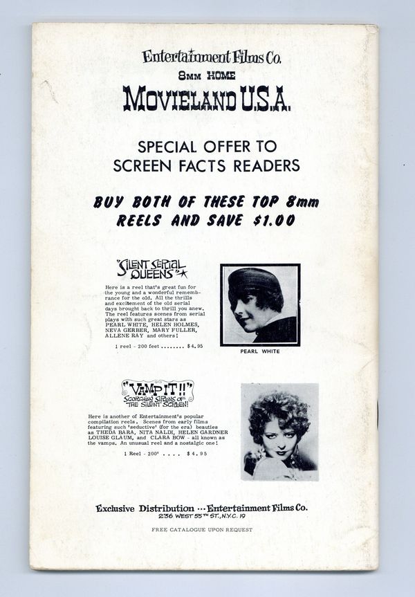 Published 1963 by Screen Facts Press.$2.50- Spine split 25%. Water damage: Slight. Staple rust: Slight.