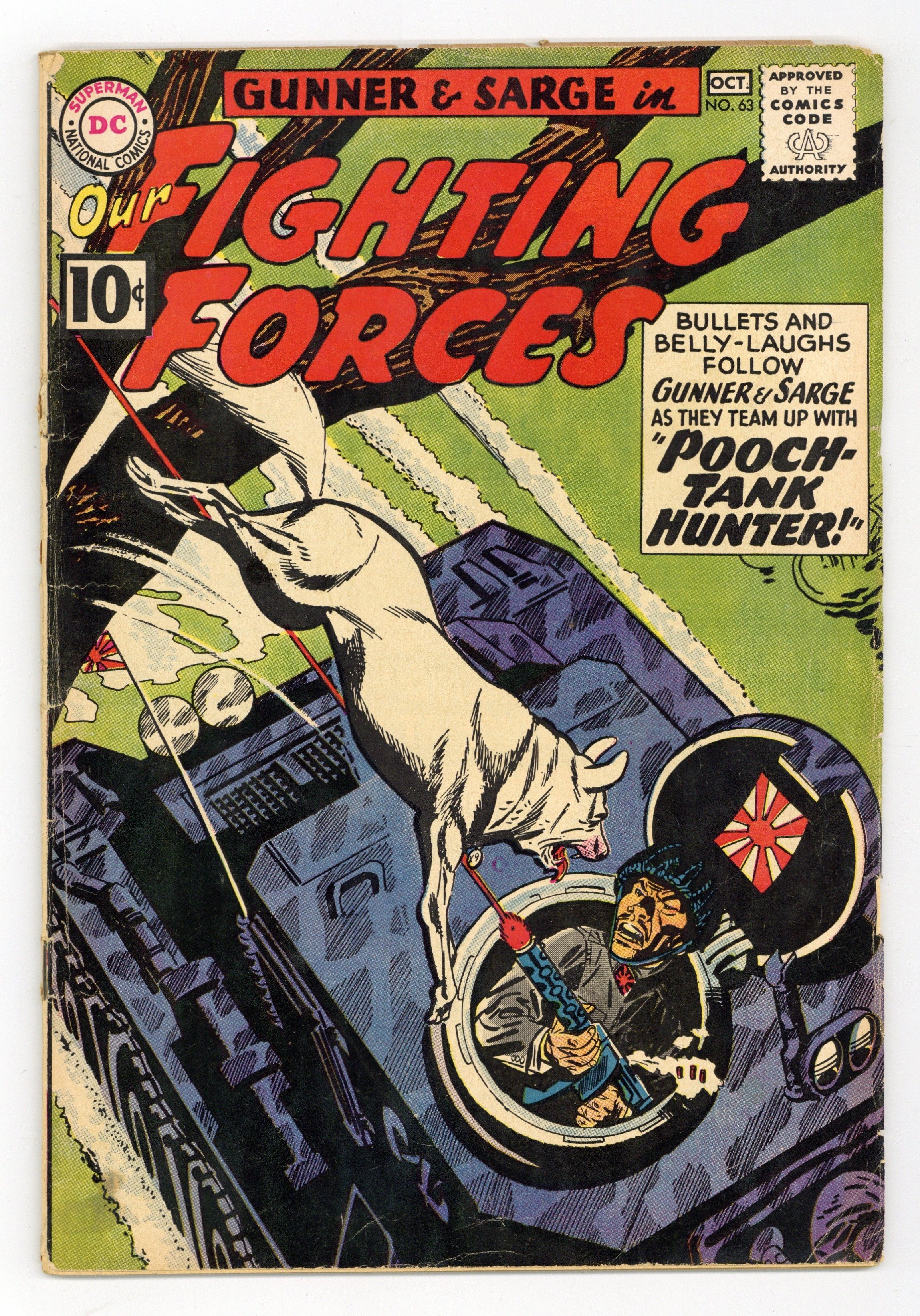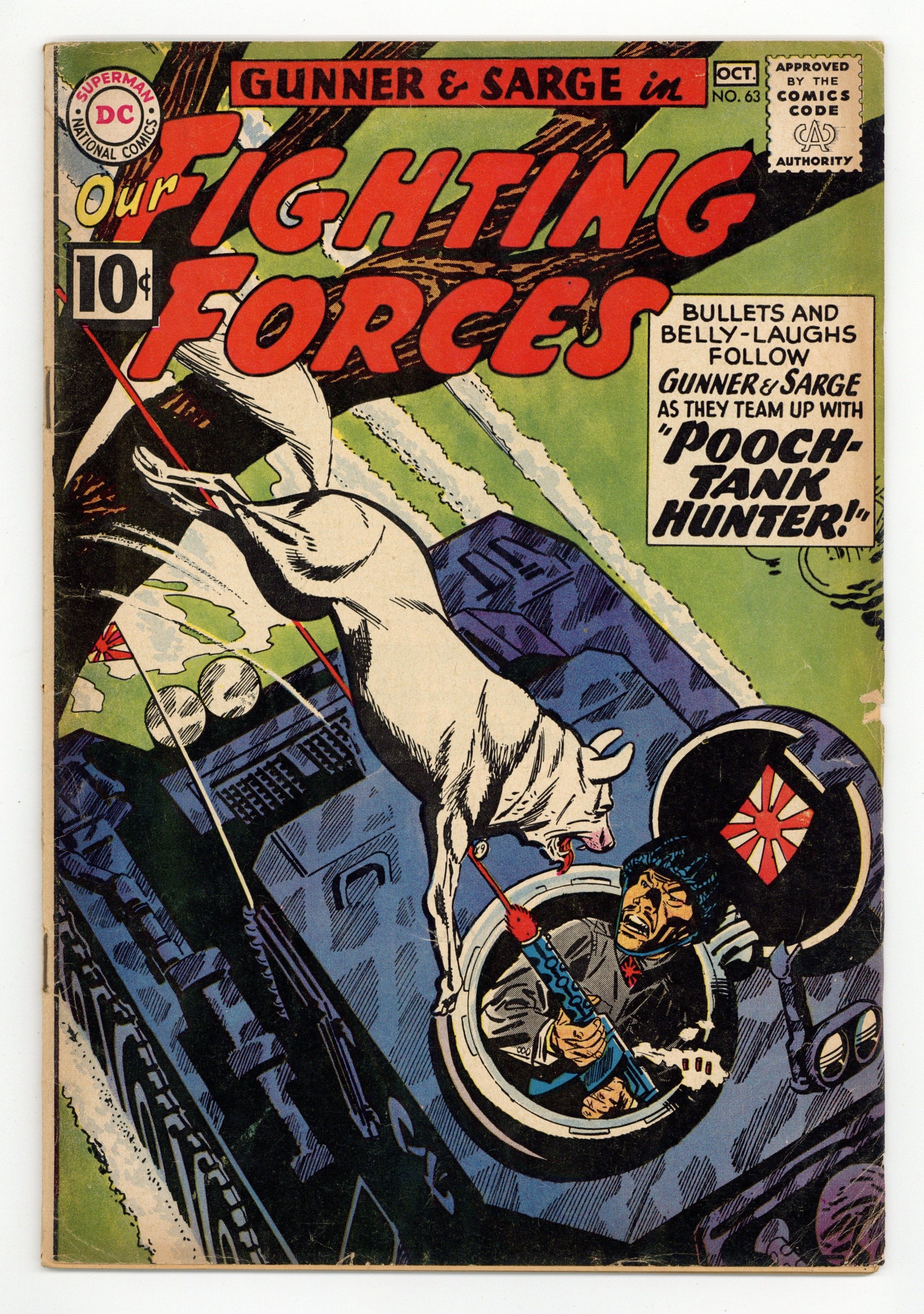 Gunner and Sarge in "A Lifeline For Sarge!" Also "Frogman in a Fog" (art by Joe Kubert) and "They Took Away the Sky!" (art by Russ Heath). Full-page ad for Sea Devils # 1. 36 Pages, Full Color. Cover price $0.10.