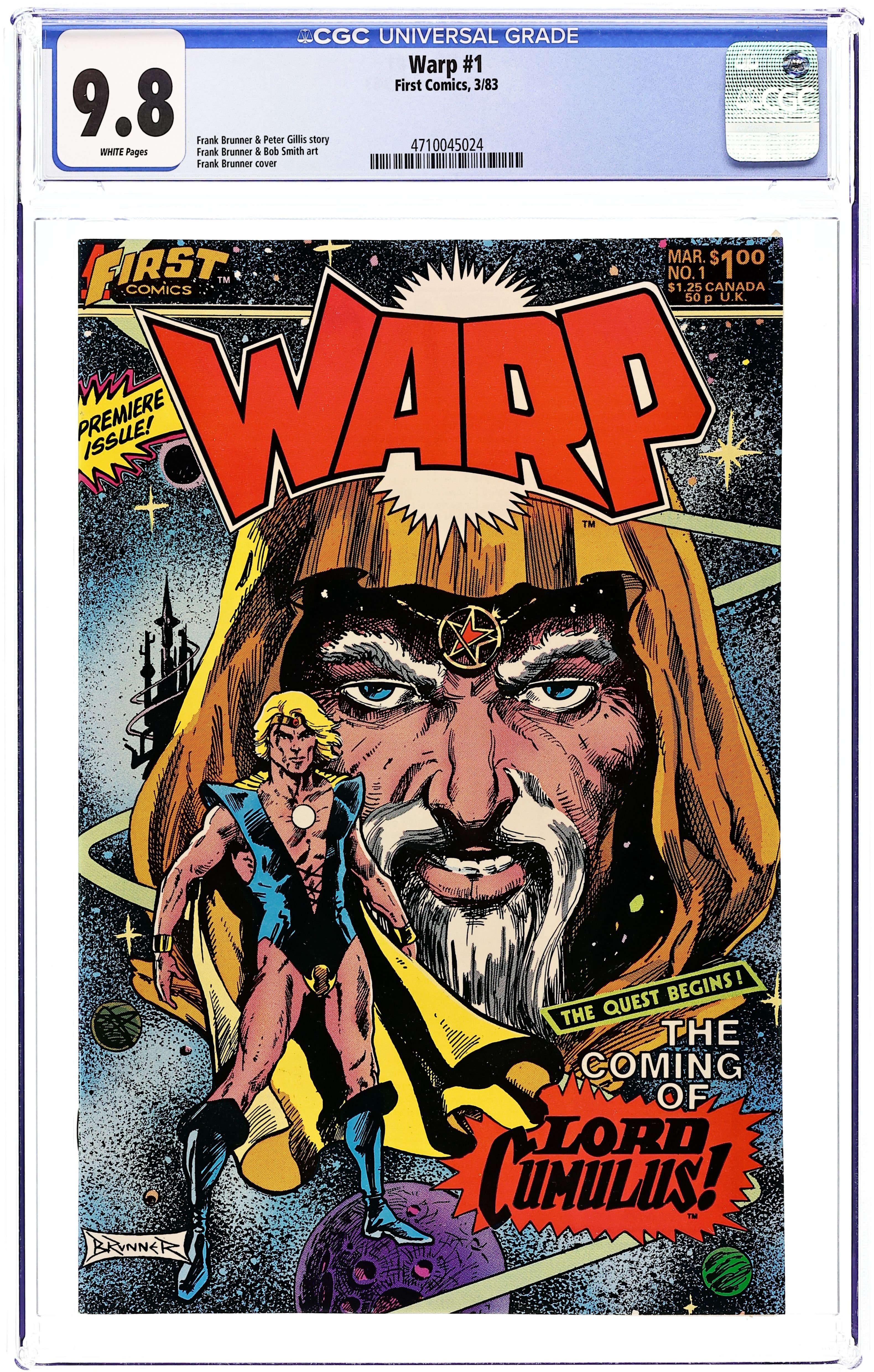 David Carson, ordinary man in an ordinary bank teller job, suddenly finds himself pulled into another time and space where he is called Lord Cumulus and put into training to face the powerful Prince Chaos in "Warp." Script by Frank Brunner & Peter Gillis and art by Frank Brunner & Bob Smith. Issue also has Sargon Mistress of War in "Rough and Tumble" in which Sargon is sent to retrieve an amulet stolen by the Quasinoids. Script by John Ostrander and art by Lenin Delsol & Joe Staton. Cover price $2.00.