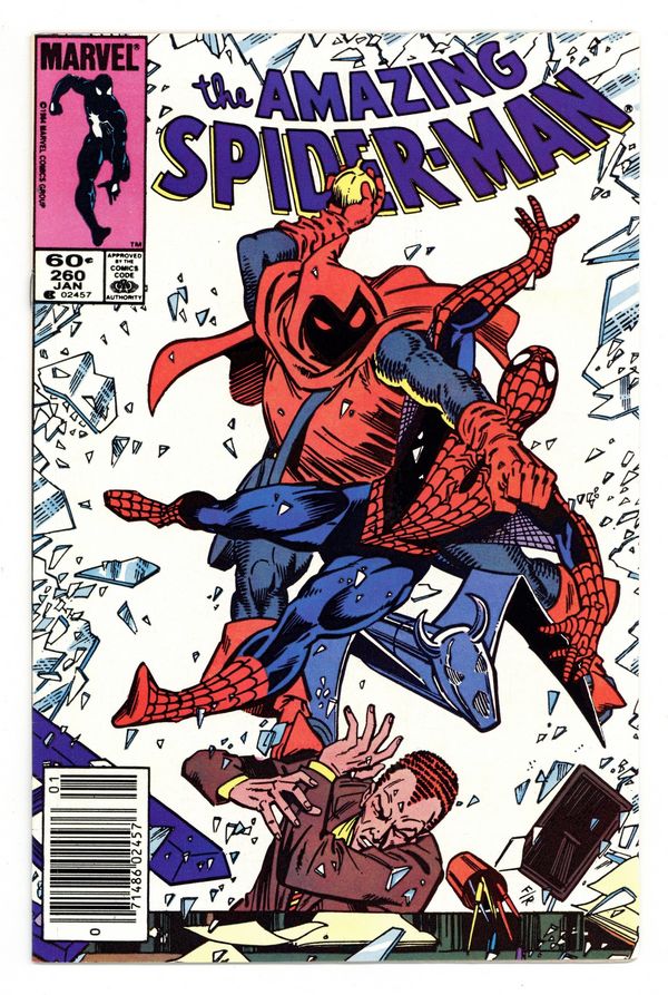 Tags: Spider-Man$16.75Newsstand Edition. "The Challenge of Hobgoblin!" Script by Tom DeFalco. Pencils by Ron Frenz. Inks by Joe Rubinstein and Brett Breeding. Cover by Ron Frenz and Joe Rubinstein. The Hobgoblin and the Rose unleash their two-pronged attack on Harry Osborn! The goblin ambushes Harry at his corporate office, while the Rose's henchmen kidnap Liz Osborn and Mary Jane! Auspiciously, the wondrous wall-crawler is close by to lock horns with the Hobgoblin! But who is going to save MJ and Harry's expectant wife? Could it be the Green Goblin?! Stay tuned! Cameo appearances by Aunt May, Betty Brant Leeds, Joe Robertson, J. Jonah Jameson, Susan Richards, Franklin Richards, and the alien symbiote (costume). (Note: This story was reprinted in Marvel Tales 274.) 36 pgs. Cover price $0.60.