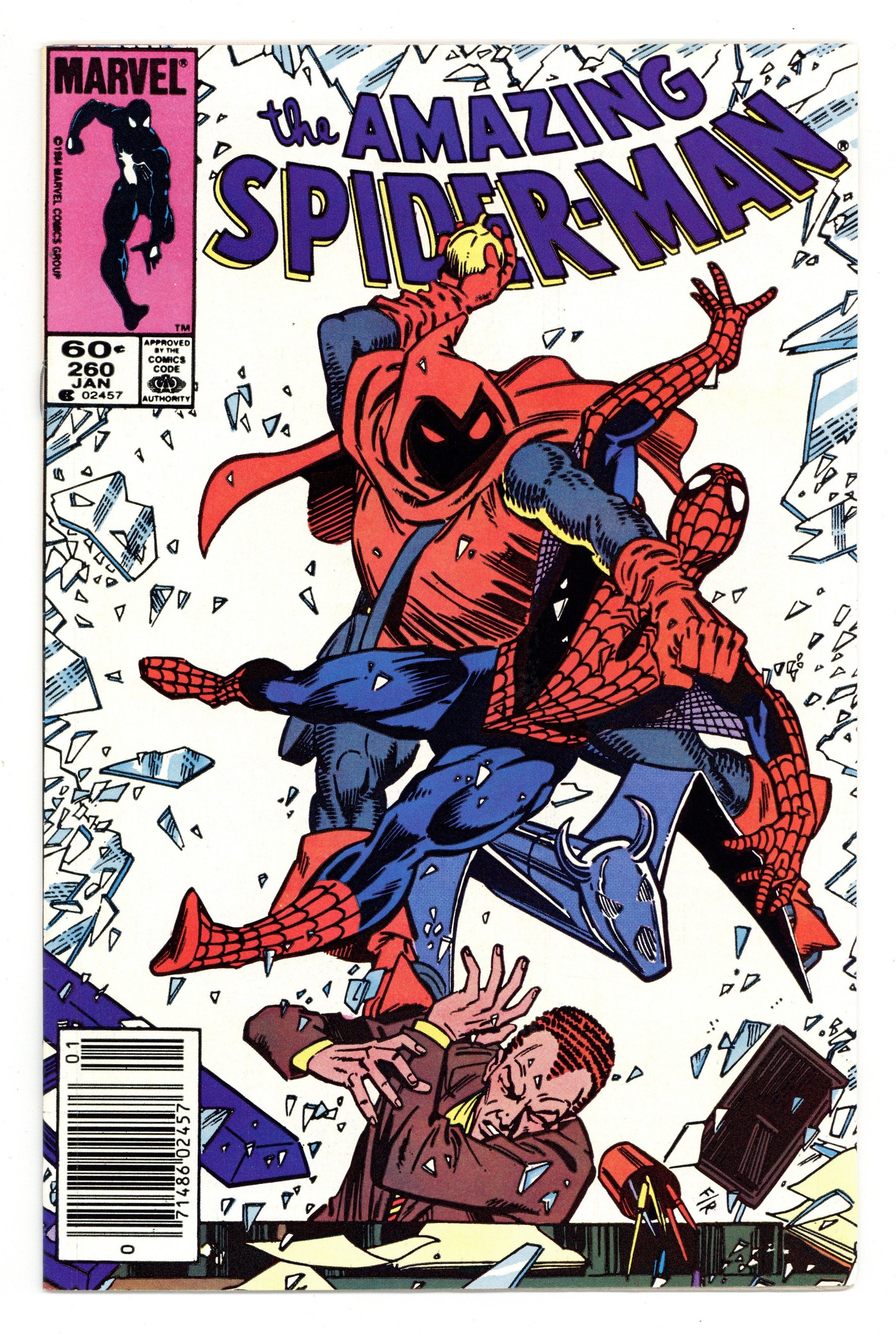 Newsstand Edition. "The Challenge of Hobgoblin!" Script by Tom DeFalco. Pencils by Ron Frenz. Inks by Joe Rubinstein and Brett Breeding. Cover by Ron Frenz and Joe Rubinstein. The Hobgoblin and the Rose unleash their two-pronged attack on Harry Osborn! The goblin ambushes Harry at his corporate office, while the Rose's henchmen kidnap Liz Osborn and Mary Jane! Auspiciously, the wondrous wall-crawler is close by to lock horns with the Hobgoblin! But who is going to save MJ and Harry's expectant wife? Could it be the Green Goblin?! Stay tuned! Cameo appearances by Aunt May, Betty Brant Leeds, Joe Robertson, J. Jonah Jameson, Susan Richards, Franklin Richards, and the alien symbiote (costume). (Note: This story was reprinted in Marvel Tales 274.) 36 pgs. Cover price $0.60.