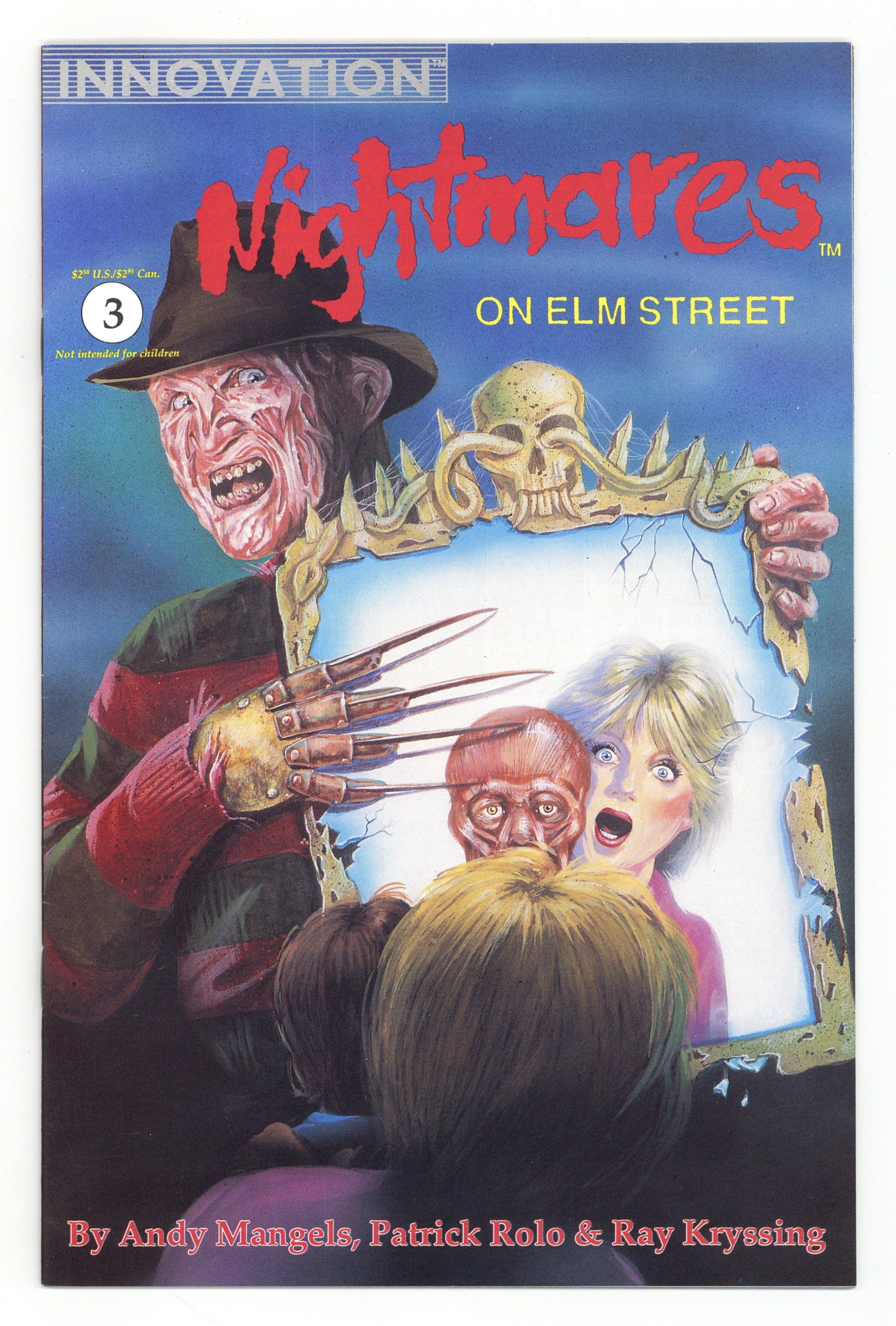 Published Dec 1991 by Innovation.$26.00Written by Andy Mangels. Art by Patrick Rolo and Ray Kryssing. Neil is in a coma, Nancy Thompson doesn't seem to be protecting the dream plane, and Devonne has been released from the asylum. How does Springwood's mysterious dreamtime madman, Freddy Krueger, fit into it all? And who will survive this intense story? 32 pages, full color. Mature Readers. Cover price $2.50.