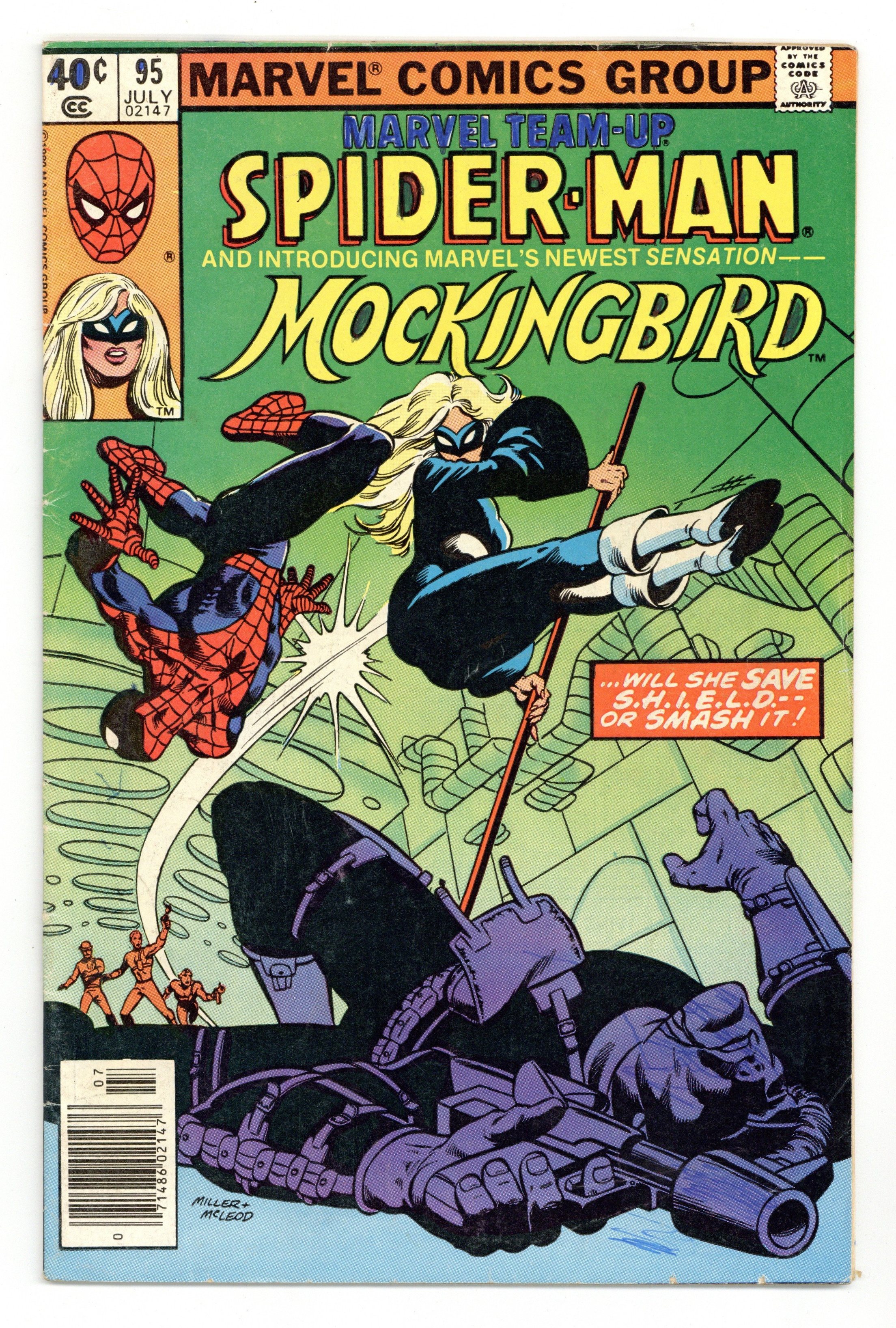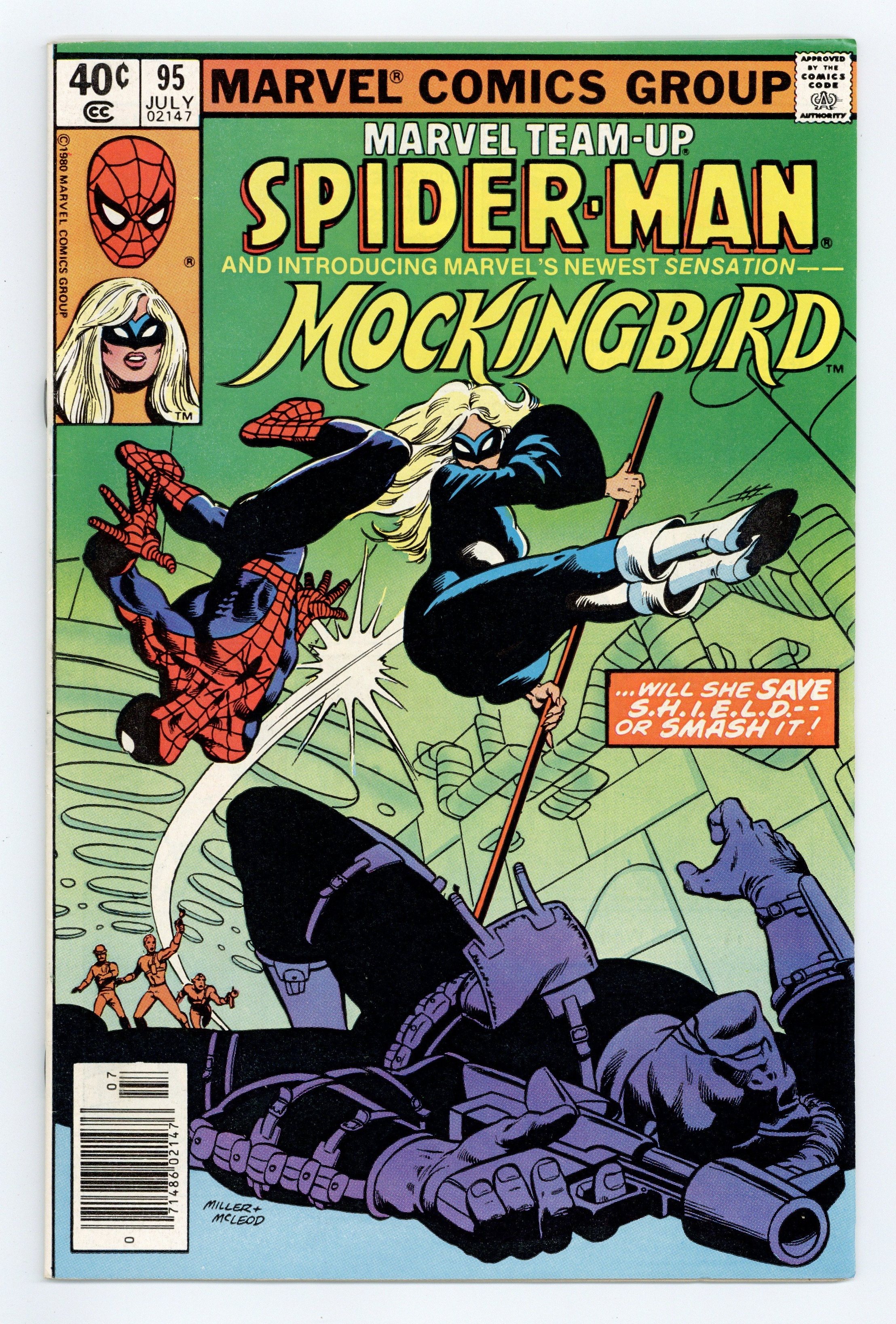 $11.50Newsstand Edition. "And No Birds Sing!" Guest-starring Spider-Man and Mockingbird (1st appearance). Script by Steven Grant. Art by Jimmy James (breakdowns) and Bruce Patterson (finishes). Cover by Frank Miller and Bob McLeod. A rogue SHIELD branch director tricks the web-slinger into believing that Nick Fury's life is in jeopardy! Specifically, from a former SHIELD operative...Barbara Morse! However, Mockingbird is actually trying to save Nick Fury. Will Spider-Man realize that in time? First appearance of Bobbi Morse as Mockingbird. (Notes: After a cameo appearance in Contest of Champions 1, Mockingbird appears next in the first Hawkeye Limited Series published in 1983. The letters page contains a brief essay from Mark Gruenwald about the creation of Mockingbird.) 36 pages. Cover price $0.40.