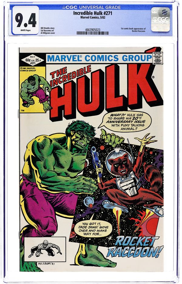 Ends Dec 15 8:40 PM CST Bid History 6 bids Current Bid $13 Your Secret Max Bid If you'd like to bid, please log in or register. Direct Edition. 2nd appearance of Rocket Raccoon (see Marvel Preview #7 for 1st appearance). Story by Bill Mantlo. Art by Sal Buscema. The Hulk celebrates his 20th Anniversary with one of the most offbeat stories of all. Following the events of last issue, Hulk hurtles through the void only to run into the marvelous Rocket Raccoon and his band of colorful friends. Can the Hulk aid Rocket and his crew against the machiavellian Judson Jakes and his sinister scientist, the tortoise Uncle Pyko? 36 pages. Cover price $0.60.