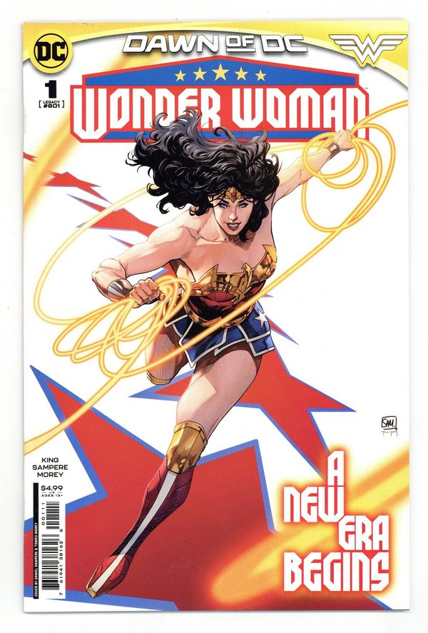 Tags: Wonder Woman$17.50Written by Tom King. Art by Daniel Sampere. Cover by Daniel Sampere. THE AMAZON WARRIOR IS NOW A WANTED OUTLAW! A NEW ERA FOR THE AMAZON WARRIOR BEGINS, FROM THE SUPERSTAR TEAM OF TOM KING AND DANIEL SAMPERE! After a mysterious Amazonian is accused of mass murder, Congress passes the Amazon Safety Act, barring all Amazons from U.S. soil. To carry out their plans, the government starts a task force, the Amazon Extradition Entity (A.X.E.), to remove those who don't comply, by any means necessary. Now, in her search for the truth behind the killing, Wonder Woman finds herself an outlaw in the world she once swore to protect! Writer Tom King (Batman, Mister Miracle, Supergirl: Woman of Tomorrow) and superstar artist in the making Daniel Sampere (Dark Crisis, Action Comics) join forces for this action-packed relaunch and the beginning of what will undoubtedly become a groundbreaking run on the character. 40 pages, full color. Rated T+ Cover price $4.99.