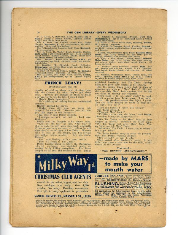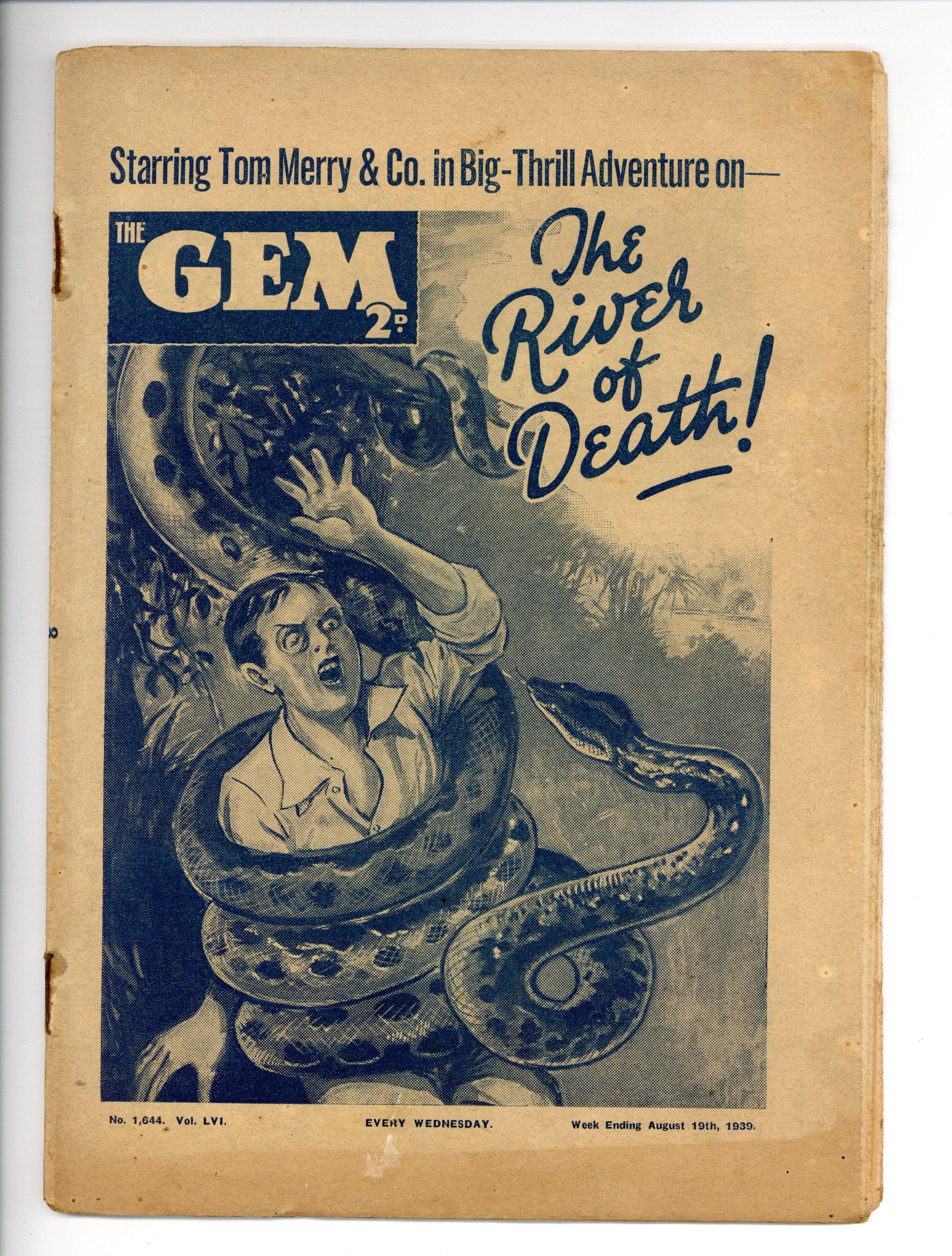 UK story magazine published by Amalgamated Press between 1907-1939, predominantly featuring the activities of boys at the fictional school St. Jim's. 6.75" x 9.5", 36 pages, B&W