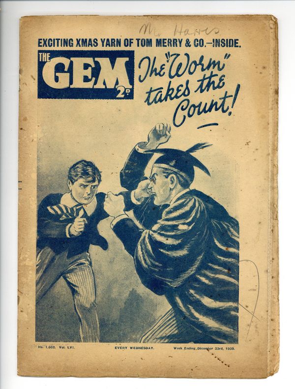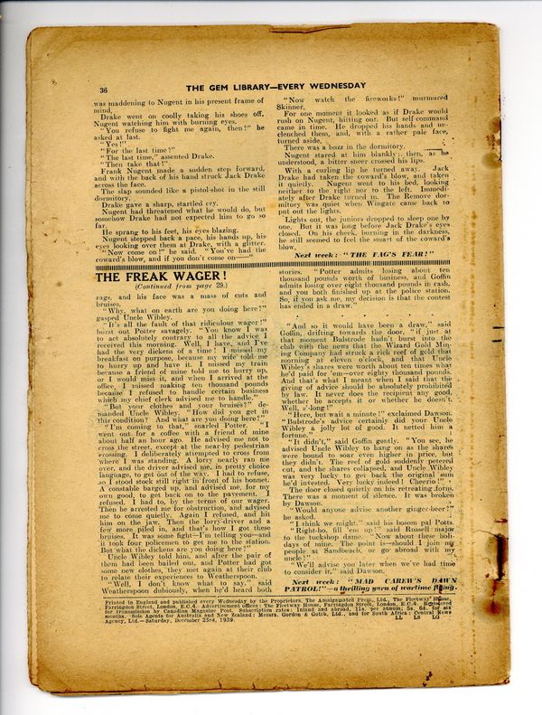 UK story magazine published by Amalgamated Press between 1907-1939, predominantly featuring the activities of boys at the fictional school St. Jim's. 6.75" x 9.5", 36 pages, B&W