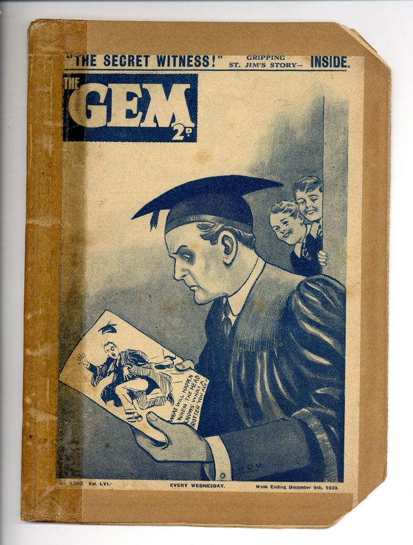 UK story magazine published by Amalgamated Press between 1907-1939, predominantly featuring the activities of boys at the fictional school St. Jim's. 6.75" x 9.5", 36 pages, B&W