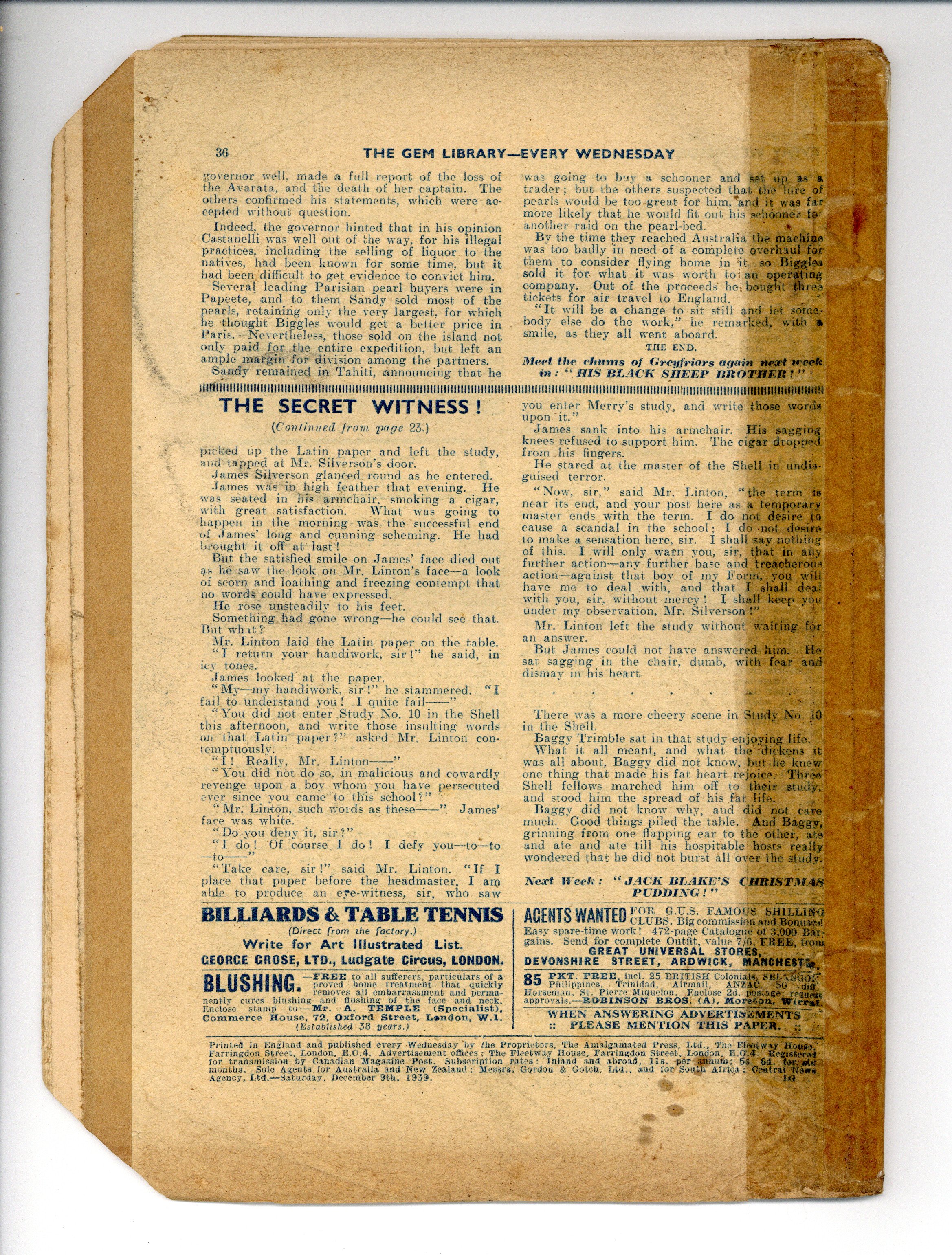 Published Dec 1939 by Amalgamated Press.$12.00- Staple rust: Extensive.