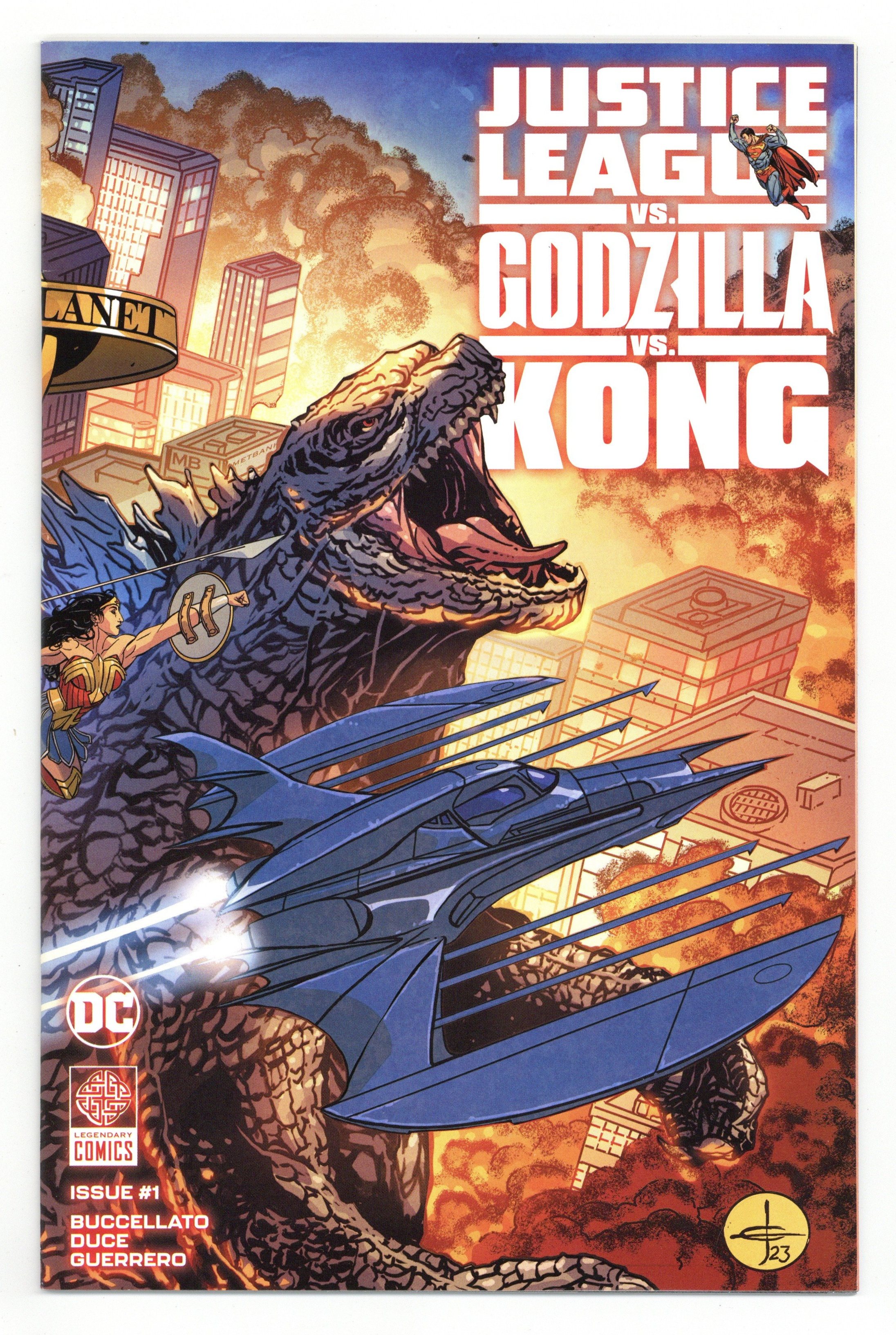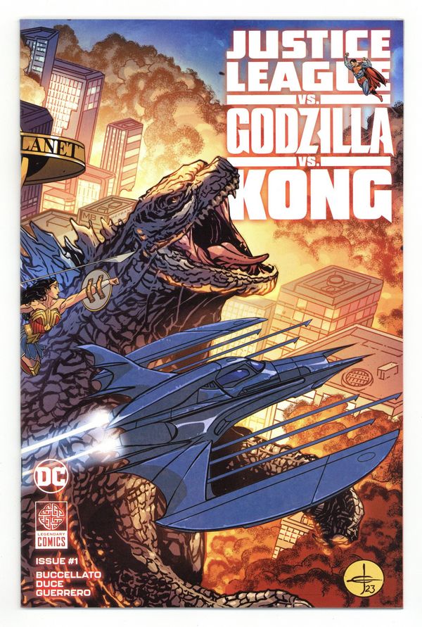 $24.00Written by Brian Buccellato. Art by Christian Duce. Cover by Drew Johnson. HEROES AND MONSTERS COLLIDE IN THE CROSSOVER EVENT OF THE YEAR! The cataclysmic crossover event of the year is here as the DC Universe clashes with Legendarys Monsterverse in Justice League vs. Godzilla vs. Kong. Clark Kent is enjoying a night off with a very important dinner planned with his girlfriend, Lois Lane, when the entire city shudders under the weight of the monstrous Godzilla, who emerges from the bay! What started as a routine clash between the Justice League and the Legion of Doom takes a dangerous turn when the wall between worlds is breached...with Godzilla, Kong, and the Monsterverse emerging on DC's Earth! What ensues will be a brawl of unprecedented scale and destruction from acclaimed writer Brian Buccellato (Injustice) and bestselling artist Christian Duce (Batman/Fortnite: Zero Point)! 40 pages, full color. Rated T+ Cover price $4.99.