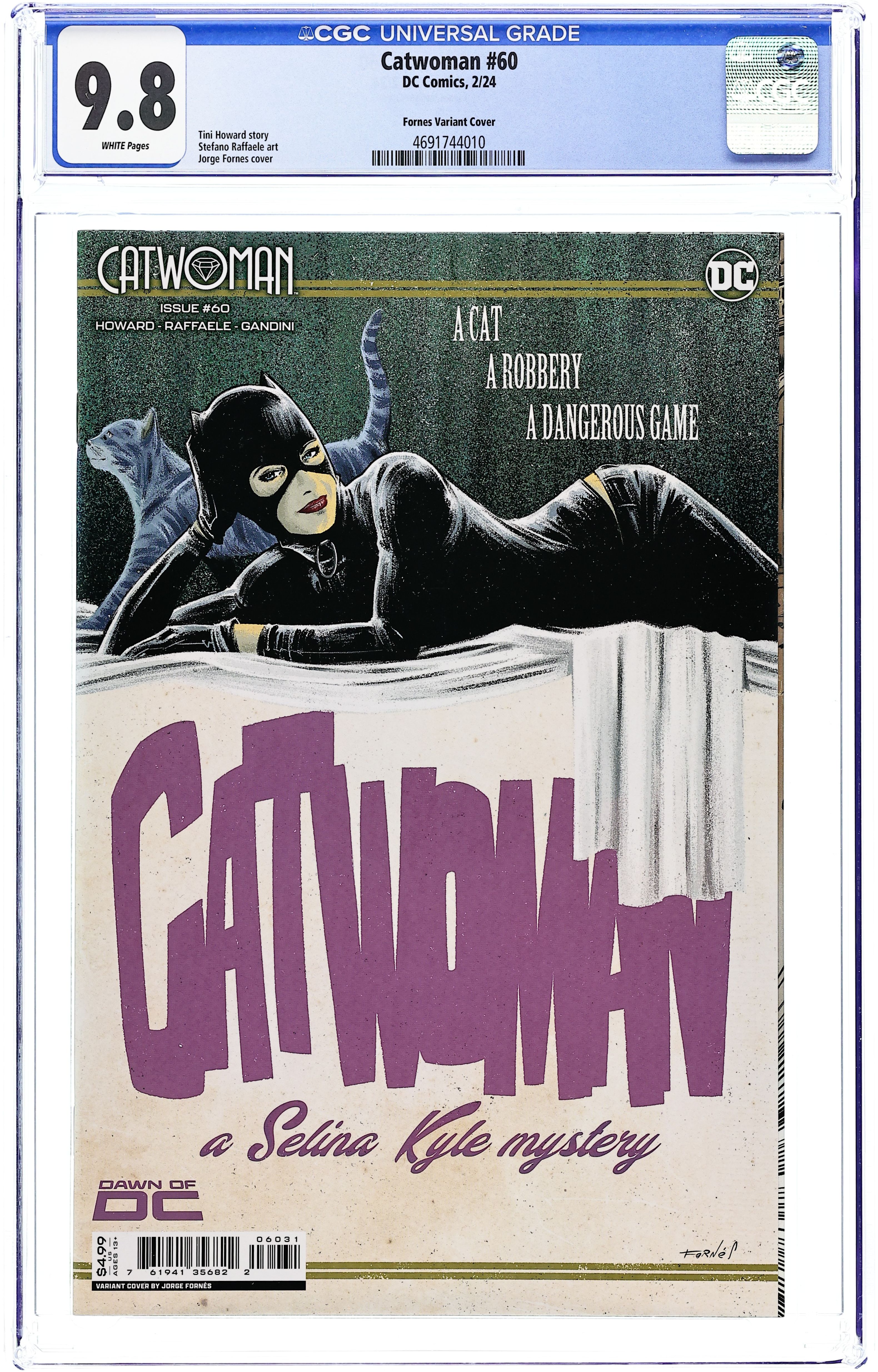 Written by Tini Howard. Art by Stefano Raffaele. Cover by Jorge Fornes. NINE LIVES PART TWO. Somewhere in one of the world's most beautiful cities, a dance to the death is taking place. The setting? An accursed theater where no matter the play in question, the stakes are life and death, with a prize worth more than its weight in gold. And at the heart of it all stalks the devilishly deviant Flamingo and his latest costar--Catwoman! Can Selina Kyle glide her way through the performance of her lifetime, or will it be curtains for the amoral alley cat?! 32 pages, full color. Rated T+ Cover price $4.99.