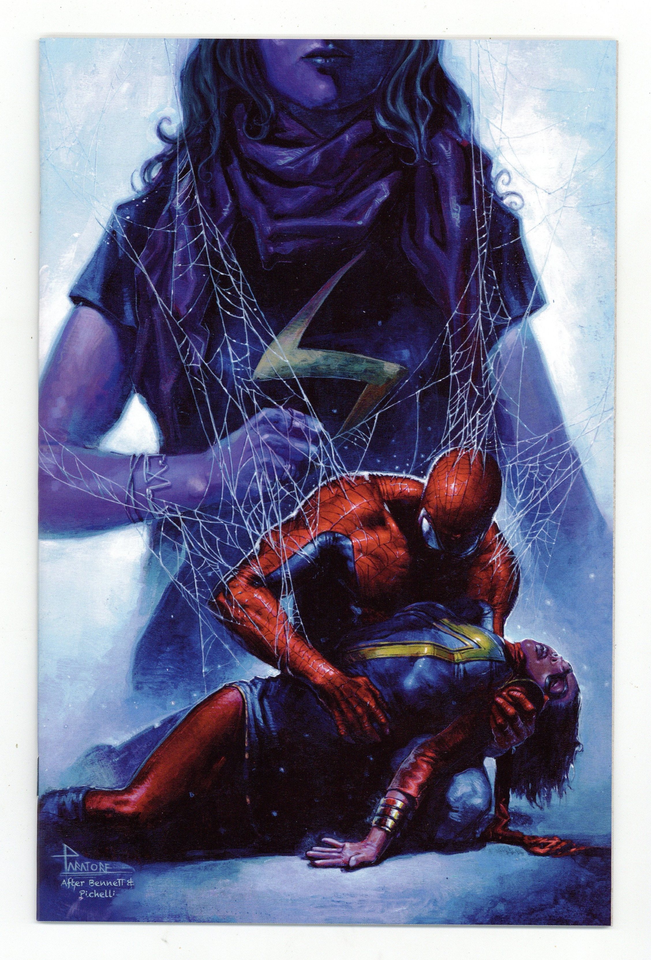 Second Printing. Comics Illuminati (Unknown Comics, Comic Traders, AntiHero Gallery, and The 616 Comics) Exclusive Virgin Cover by Davide Paratore. Written by Zeb Wells. Art by John Romita Jr. Now fully in the present, the Emissary has returned and his power is so far beyond Spider-Man's abilities. The heroes may figure out a way to win, but the cost of victory will be so immense that you may hope they don't... 44 pages, full color. Rated T+