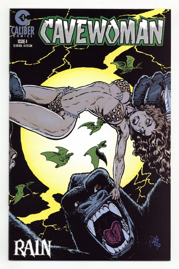 Story, art and cover by Budd Root. The second series featuring voluptuous superwoman Meriem Cooper, who battles dinosaurs in the distant past. As the storm makes life even more dangerous for the people of Marshville, Meriem is attacked by Klyde the giant ape. 32 pages, B&W. Mature readers. Cover price $2.95.