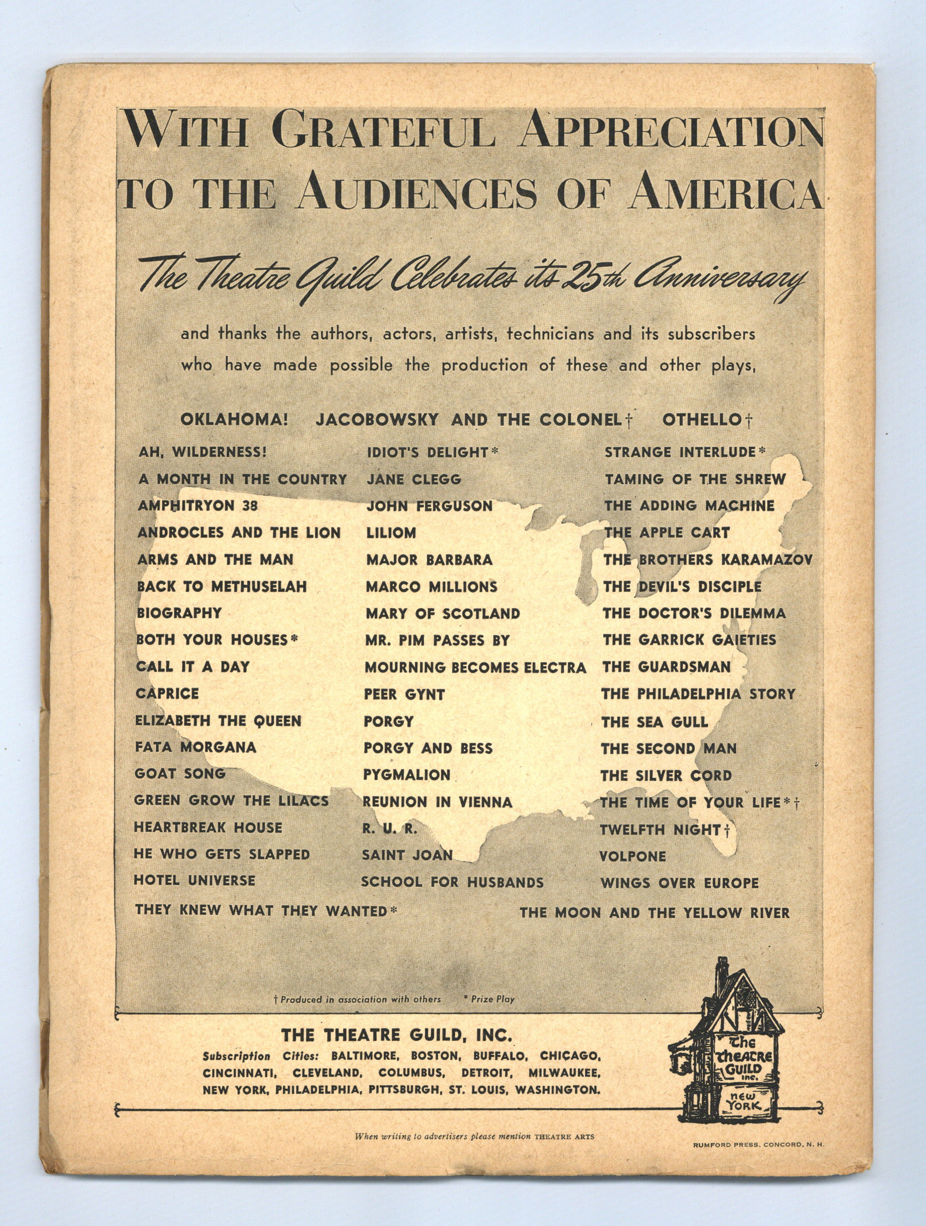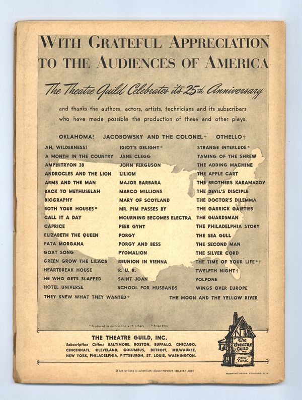 Published Jun 1944 by Theatre Arts, Inc..$21.00- Water damage: Slight. Staple rust: Slight.