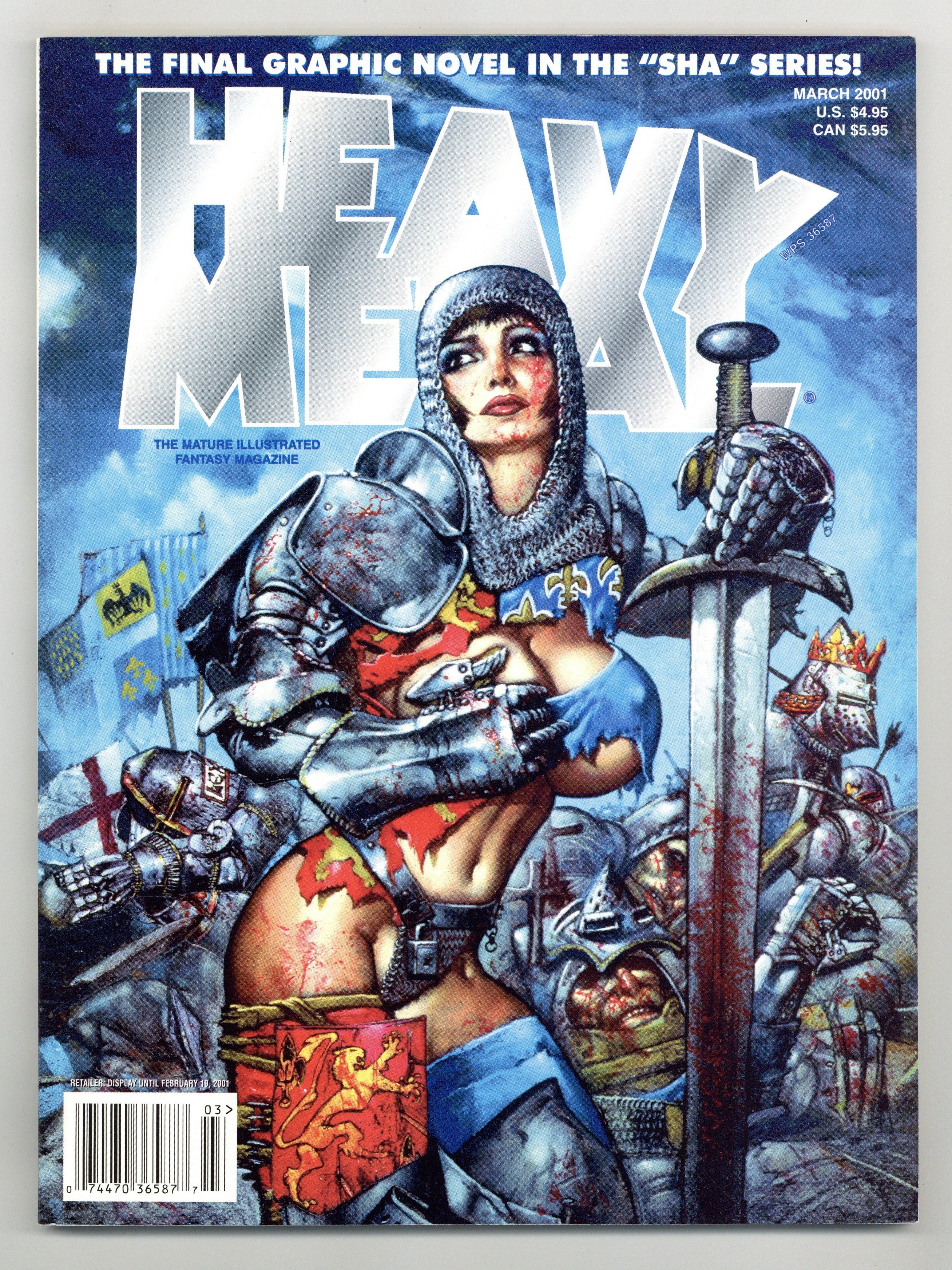 Published Mar 2001 by HM Communications.$11.00Dubbed "The mature illustrated fantasy magazine," Heavy Metal also publishes tales of horror, science fiction, and adventure. This issue includes the following stories: Galactic Geographic by Karl Kofoed; The Longest Pleasure by C.J. Henderson and Langden Foss; Sha-Soul Vengeance by Pat Mills and OlivierLedroi; Wildflower by Billy Martinez; Wake of the Tyra Li by Eddie Wilson; The Mailman by Carlos Trillo and Domingo Mandrafina; The Swamp Monster Strikes Again by Eduardo Risso; and The Daily News by Daspastoras. Cover art by Simon Bisley. Cover price $4.95.