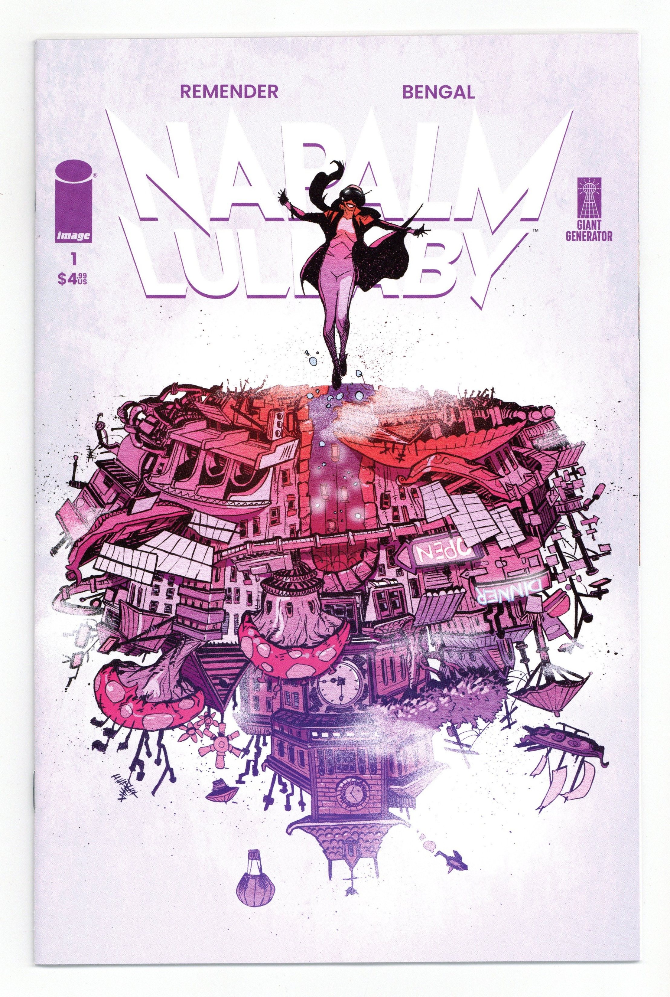 $21.00Limited 1 for 60 Retailer Incentive Variant Cover. Written by Rick Remender. Art by Bengal. Cover by Sanford Greene. Series Premiere. The bestselling creative duo of Rick Remender & Bengal reteam for Napalm Lullaby, an all-new, ongoing dystopian epic with a special double-length first issue! A child with unimaginable power is raised to believe he is God by a cult of zealots utterly confident in the moral authority of their religion. The Magnificent Leader has imposed his will on humanity and created the ultimate theocracy. Join them, or be cast out to suffer with the masses. 40 pages, full color. Rated T+ Cover price $4.99.