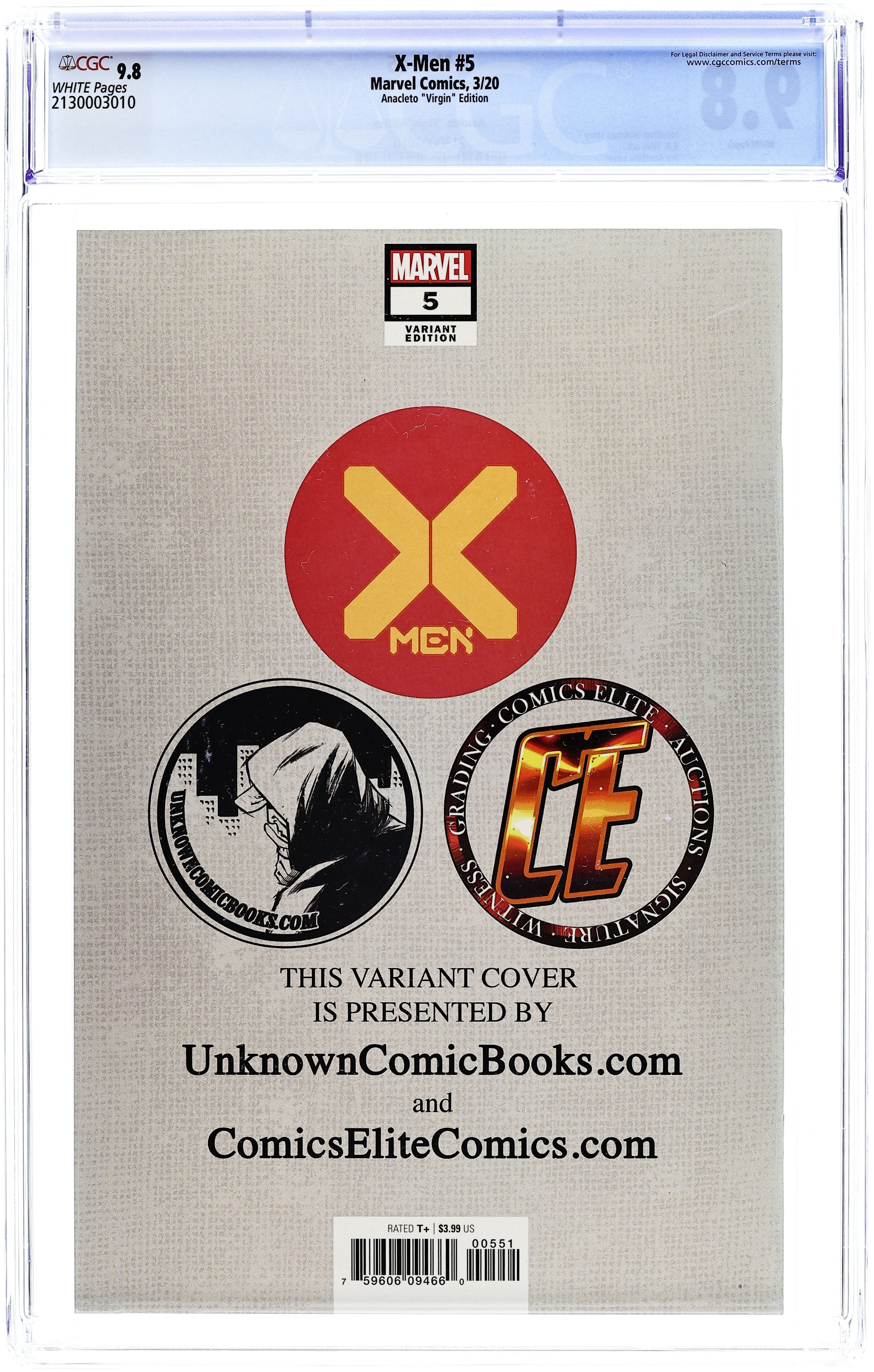 Unknown Comics and Comics Elite exclusive Virgin cover by Jay Anacleto. Written by Jonathan Hickman. Art by R. B. Silva. The X-Men, the most powerful heroes on the planet, deal with an old nemesis' surprising return... 28 pages, full color. Rated T
