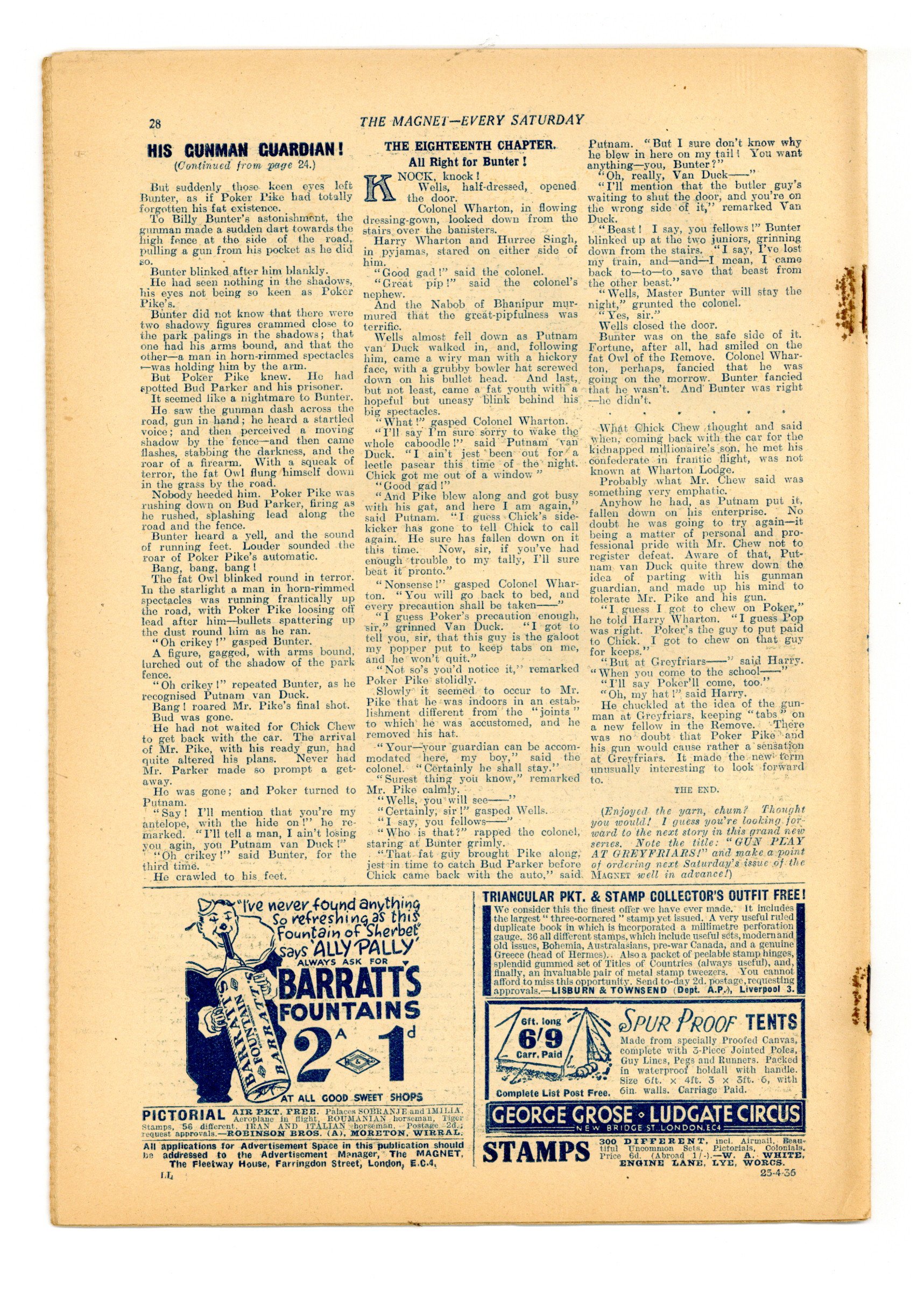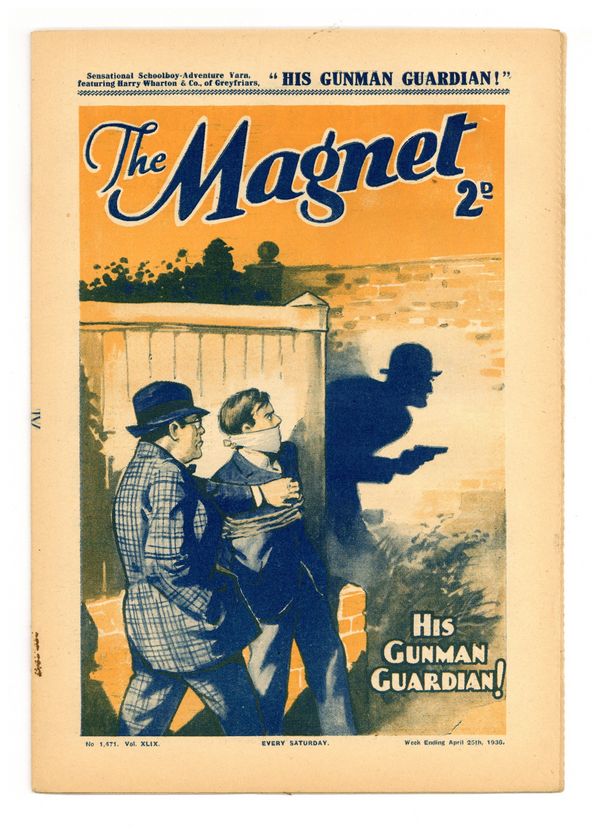 No. 1471 - April 25, 1936. Weekly British publication that ran for nearly 1,700 issues. Featured the anti-hero Billy Bunter of the Greyfriars School, along with serialized shorts. NOTE: This publication contains negative racial and cultural depictions. It reflects some attitudes of the era in which it was published that would not be acceptable today. 7.5" x 11", 28 pages, B&W.