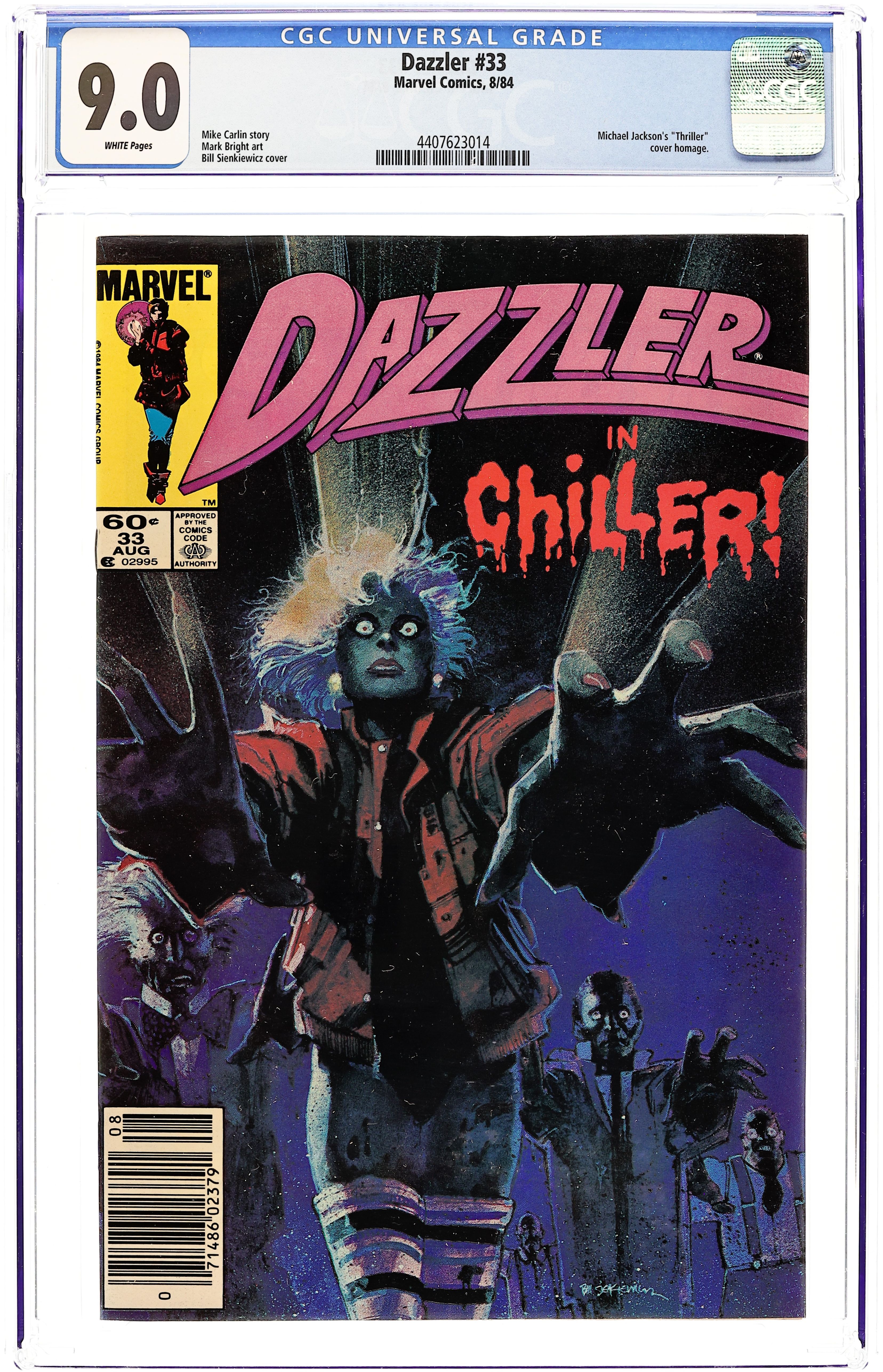 Newsstand Edition. Painted cover art by Bill Sienkiewicz. Chiller!, script by Mike Carlin, pencils by Mark Bright, inks by Vince Colletta; Ali lands a job in a music video that bears an uncanny resemblance to Michael Jackson's Thriller. 36 pgs. $0.60. Cover price $0.60.