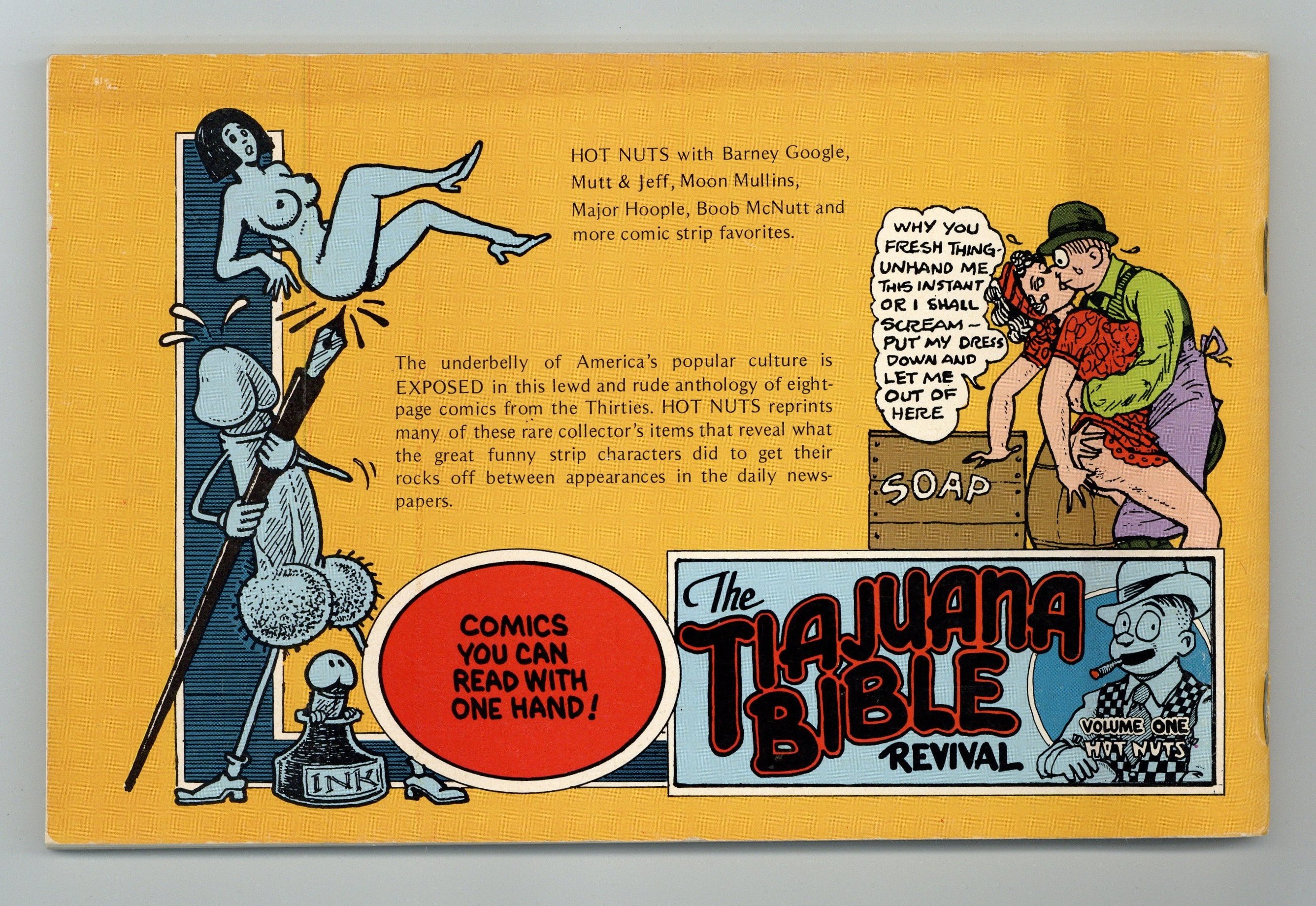 Tags: UndergroundPublished 1977 by No Publisher Listed.$60.00Adults only. Volume 1: Hot Nuts. 29 explicit comic strips. 92 Pages, B&W, 18+ Only Cover price $5.00.