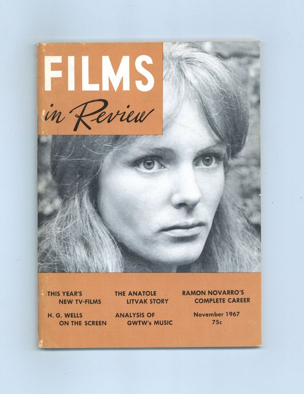 Published Nov 1967 by National Board of Review of Motion Pictures Inc..$15.00Film in Review is a publication of the National Board of Review of Motion Pictures, Inc, an independent, non-profit organization of public citizens founded in 1909 to represent the interests of the motion picture public. This National Board further assists the development of the motion picture as a source of entertainment, as education, and as art, by providing media for the expression of the public's opinion about films and their cultural and social effects. 5 1/2-in. x 7 1/2-in., 70 pages, B&W. Cover price $0.75.