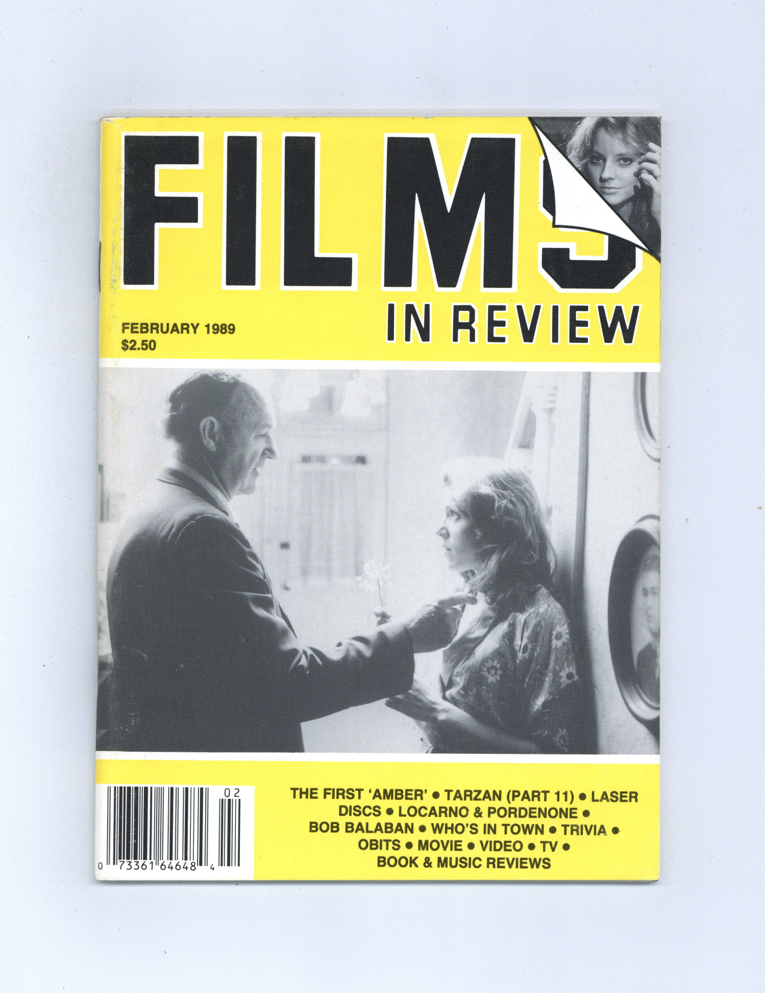 Published Feb 1989 by National Board of Review of Motion Pictures Inc..$17.00Film in Review is a publication of the National Board of Review of Motion Pictures, Inc, an independent, non-profit organization of public citizens founded in 1909 to represent the interests of the motion picture public. This National Board further assists the development of the motion picture as a source of entertainment, as education, and as art, by providing media for the expression of the public's opinion about films and their cultural and social effects. 5 1/2-in. x 7 1/2-in., 68 pages, B&W. Cover price $2.50.