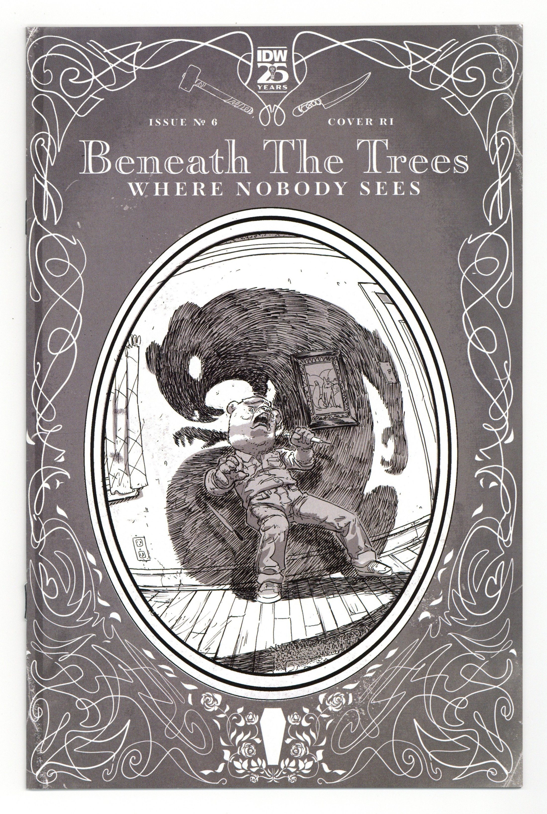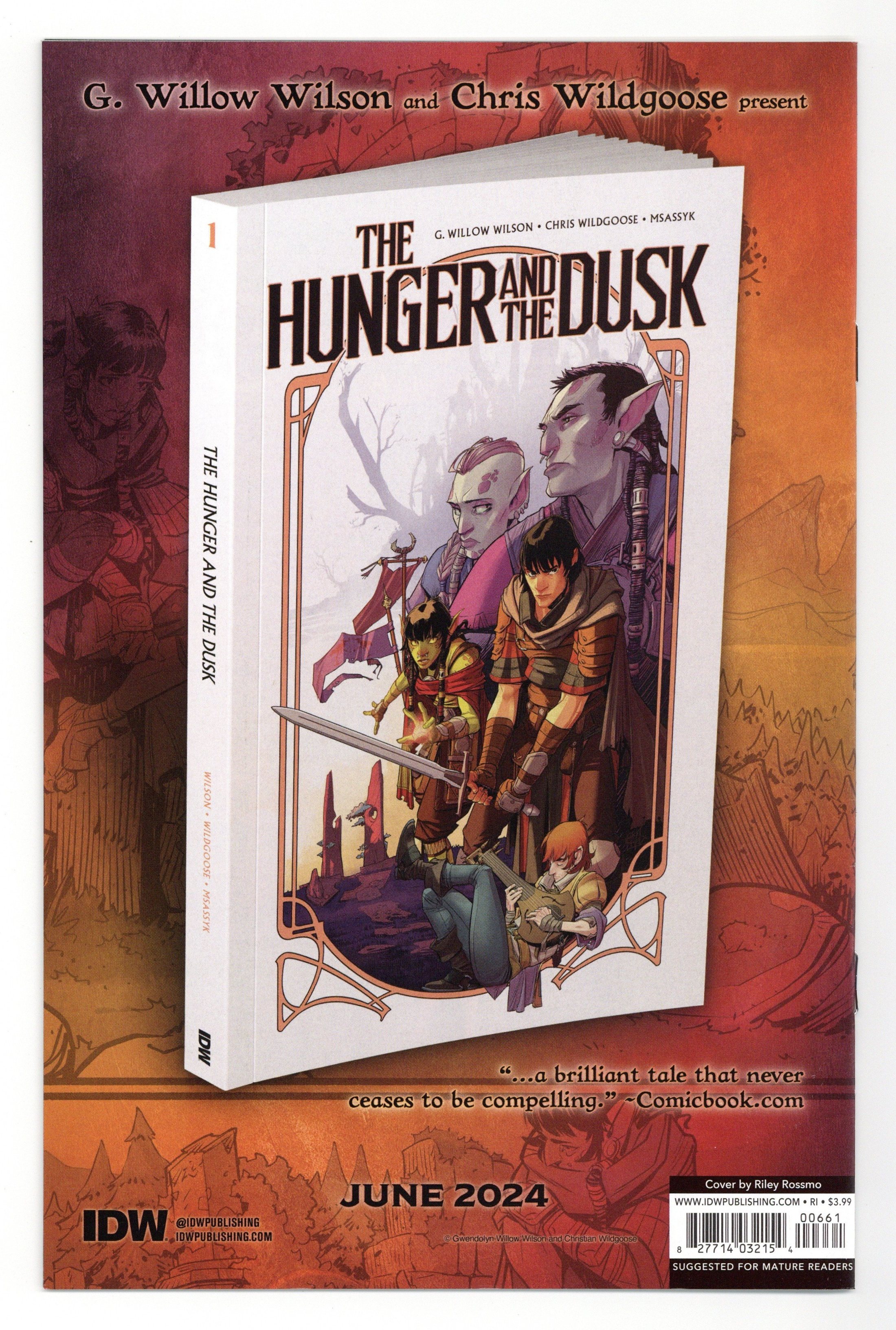 Published May 2024 by IDW Publishing.$12.00Limited 1 for 25 Retailer Incentive Variant Cover. Written by Patrick Horvath. Art by Patrick Horvath. Cover by Riley Rossmo. In Woodbrook's darkest days, many have diedThe townsfolk have trembled, shivered, and cried A horrific plan drives the fate of our bearAnd unspeakable actions will give quite a scareJoin us now, as we finally lift the veil As this, my friends, is the end of our tale 28 pages, full color. Rated M Cover price $3.99.