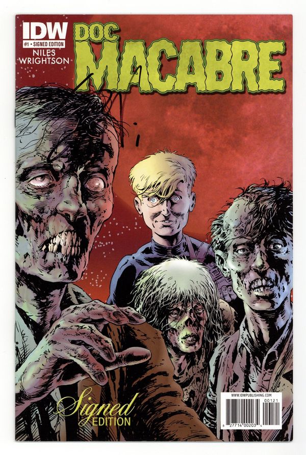 Published Dec 2010 by IDW Publishing.$8.00Signed Edition signed by Steve Niles. Steve Niles (w) o Bernie Wrightson (a & c) Got ghosts in your garage?! Tired of those pesky zombies roaming around your front lawn? Have no fear! Doc Macabre, the one-man supernatural sweeper-upper, is here! There's no job too big for Doc, who, with the aide of his right hand man, er... robot, Lloyd, will have you back resting in your lounge chair monster-free! (For a fee, of course!) Niles and Wrightson's latest opus begins here! Cover price $3.99.