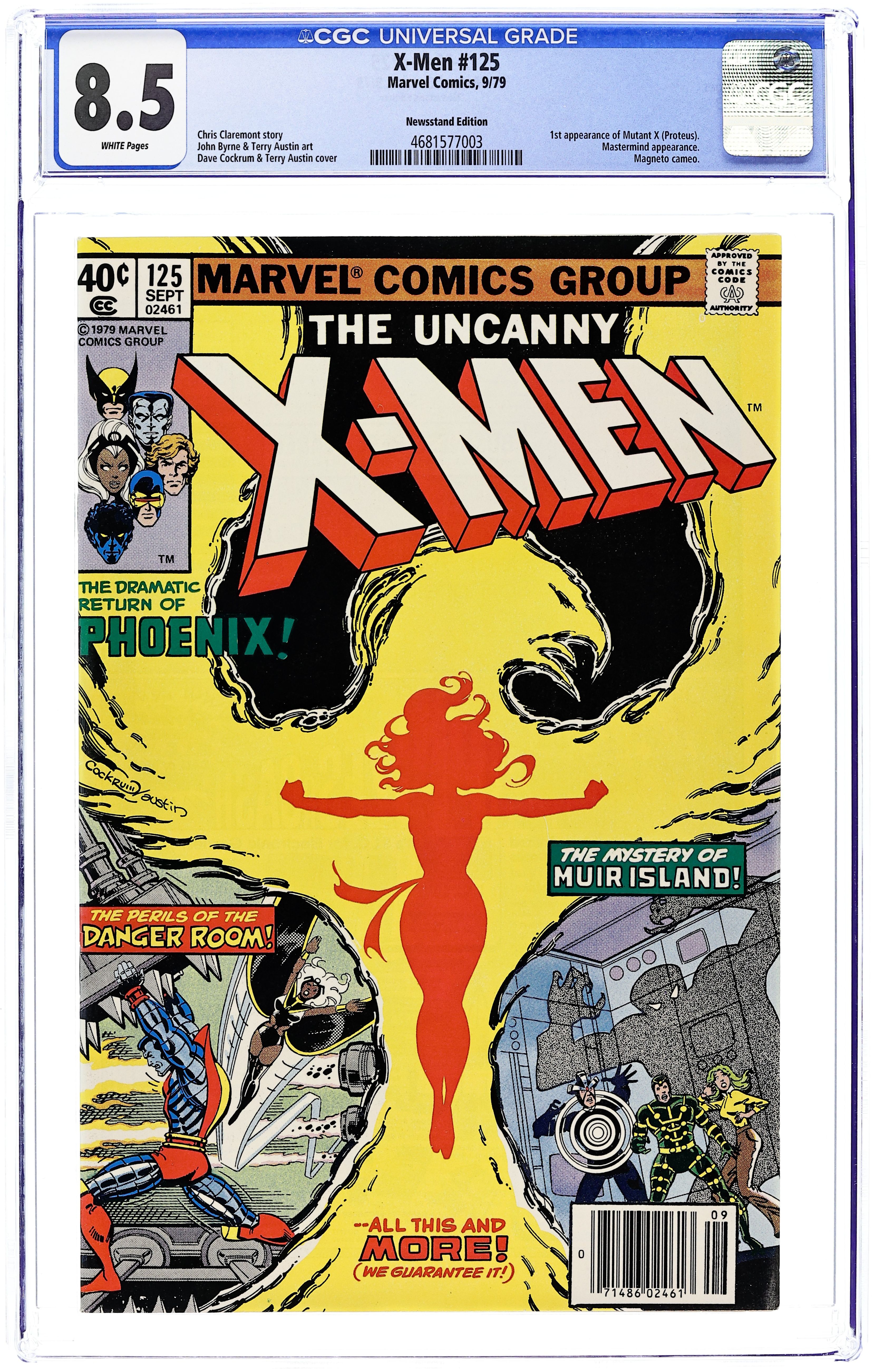 Ends Feb 2 9:56 PM CST Bid History 6 bids Current Bid $19 Your Secret Max Bid If you'd like to bid, please log in or register. Newsstand Edition. As the cover says: the dramatic return of Phoenix! "There's Something Awful on Muir Island!" "...!" Story by Chris Claremont and John Byrne. Art by John Byrne and Terry Austin. First appearance of Mutant X (Proteus). Cover price $0.40.