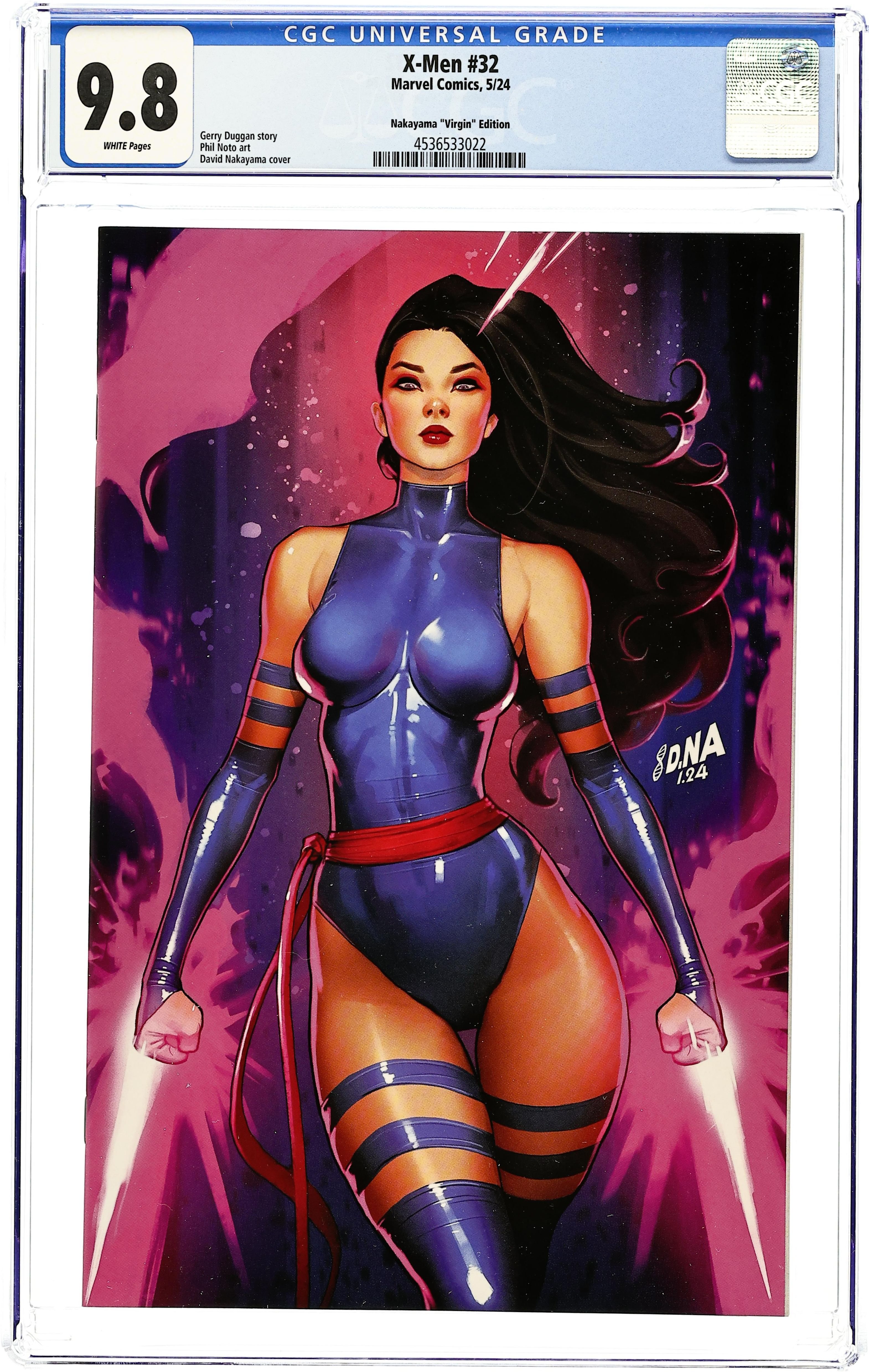 Comics Illuminati (Unknown Comics, Comic Traders, and Sleeping Giant) Exclusive Virgin Cover by David Nakayama. Written by Gerry Duggan. Art by Phil Noto. BESTIES WITH BLOODY BLADES! Kate Pryde and Illyana Rasputin have been best friends for a long time. They've had good times, and they've had bad times. One thing they can always agree on? Stomping anti-mutant bigots' heads. 28 pages, full color. Rated T