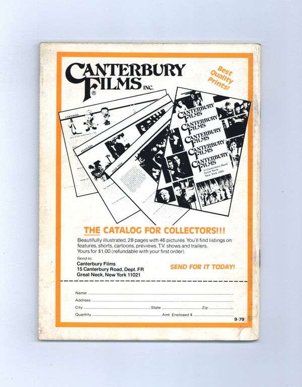 Published Oct 1979 by National Board of Review of Motion Pictures Inc..$7.00Film in Review is a publication of the National Board of Review of Motion Pictures, Inc, an independent, non-profit organization of public citizens founded in 1909 to represent the interests of the motion picture public. This National Board further assists the development of the motion picture as a source of entertainment, as education, and as art, by providing media for the expression of the public's opinion about films and their cultural and social effects. 5 1/2-in. x 7 1/2-in., 64 pages, B&W. Cover price $1.75.