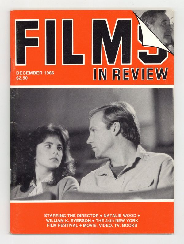 Published Dec 1986 by National Board of Review of Motion Pictures Inc..$10.00Film in Review is a publication of the National Board of Review of Motion Pictures, Inc, an independent, non-profit organization of public citizens founded in 1909 to represent the interests of the motion picture public. This National Board further assists the development of the motion picture as a source of entertainment, as education, and as art, by providing media for the expression of the public's opinion about films and their cultural and social effects. 5 1/2-in. x 7 1/2-in., 64 pages, B&W. Cover price $2.50.