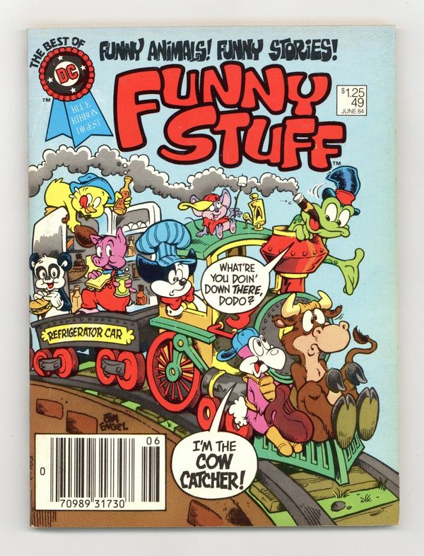 $27.00Newsstand Edition. Cover art by Jim Engel and Chuck Fiala. Brave Deed, script and art by Sheldon Mayer; Minus has to retrieve the baseball from the house of the Big-Feets, despite the cat. Space-Dodo Rides Again, art by Otto Feuer; Dodo and the Frog appear as actors in a science fiction story. Quiz Club starring Dizzy Dog, script and art by Sheldon Mayer. The Wishing Bean starring Bo Bunny, script and art by Sheldon Mayer. All Kinds of Spot! starring Stanley and His Monster, script by Arnold Drake, art by Henry Scarpelli. $1.25 Cover price. Cover price $1.25.