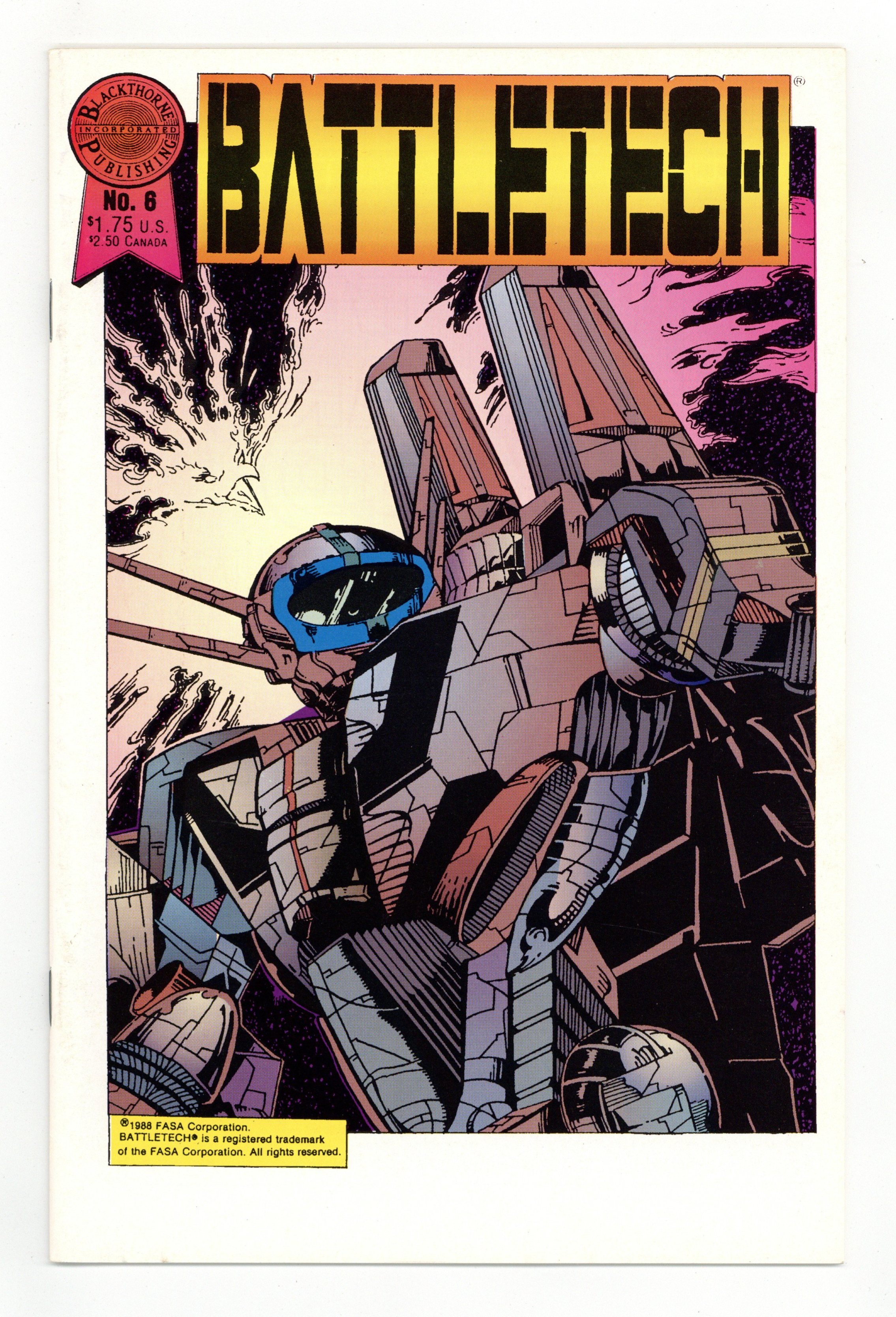 Published Dec 1988 by Blackthorne.$18.00The Nature of War. Story by Patrick Zircher. Art by Cesar Magsombol. Blackthorne Publishing presents a licensed comic based on the Battletech mecha-suit role-playing game. As Canopian forces descend on the ice world of Vakarel, Cirilo reveals himself as the brains behind the attack. Meanwhile, a Varakel count and his wife are the only ones who know the secret of the planets energy resources. Final issue of the series. 32 pages, B&W. Cover price $1.75.