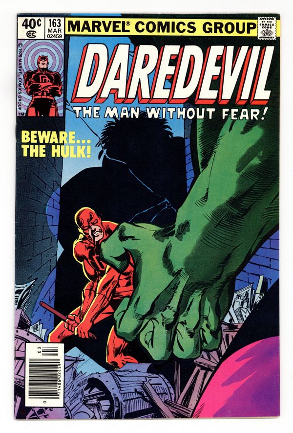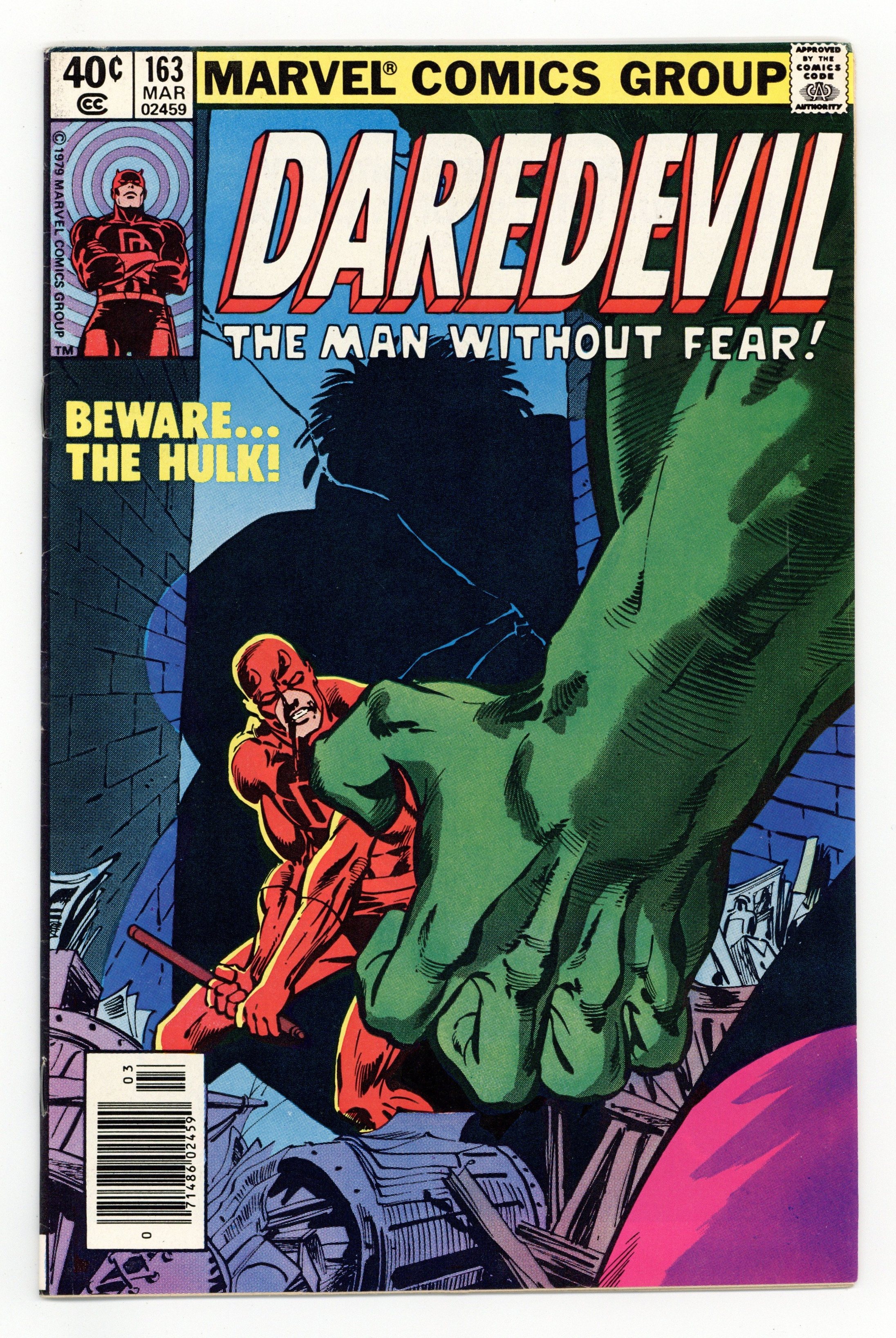 Newsstand Edition. Cover pencils by Frank Miller, inks by Joe Rubinstein. Blind Alley, script by Roger McKenzie, pencils by Frank Miller, inks by Klaus Janson (pages 1-2) and Joe Rubinstein (pages 3-18); DD tries to help Bruce Banner out and gets himself badly beaten by the Hulk for his trouble; Ben hears Heather call DD "Matt" during the battle; appearances by Tony Stark (Iron Man) and J. Jonah Jameson. Cover price $0.40.