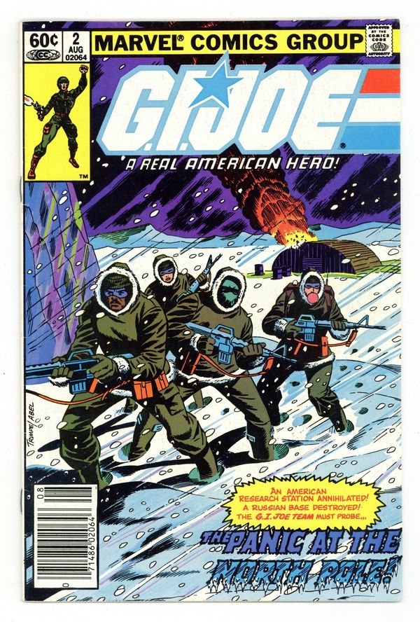 First printing. Newsstand Edition. - "Panic at the North Pole!" Written by Larry Hama. Art by Don Perlin and Jack Abel. Cover by Herb Trimpe. Snake-eyes, Scarlett, Stalker, and Breaker are sent to the arctic to do some recon where they run into special agent Quinn and his Cobra-problem. 32 pages, FC.