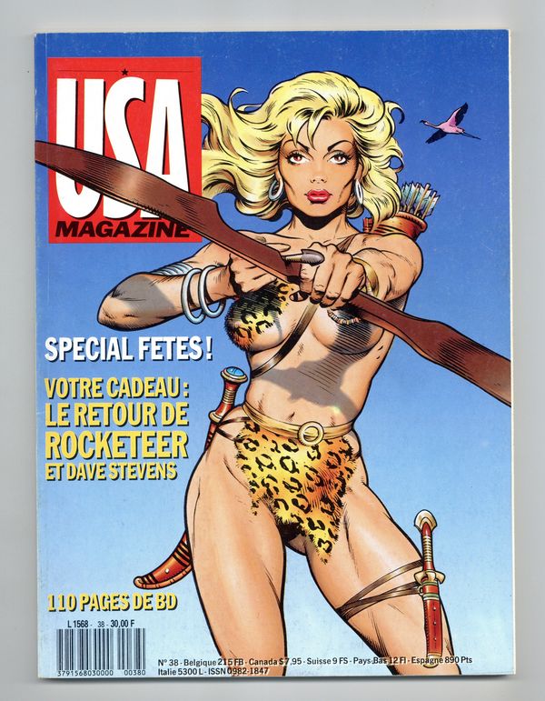 Published Jan 1989 by Comics USA.$278.00French Series. Cover by Dave Stevens. Cover reprinted from Jungle Comics (1988 Blackthorne) #1. Contents include a Rocketeer episode by Stevens ("Cliff's New York Adventure", from The Rocketeer Adventure Magazine #1, a Xenozoic Tales episode by Mark Schultz (partial), the last installment of Batman: The Killing Joke by Alan Moore and Brian Bolland and other American and European comics. 8-1/2" x 11-1/2", 132 pages, full color, French language.