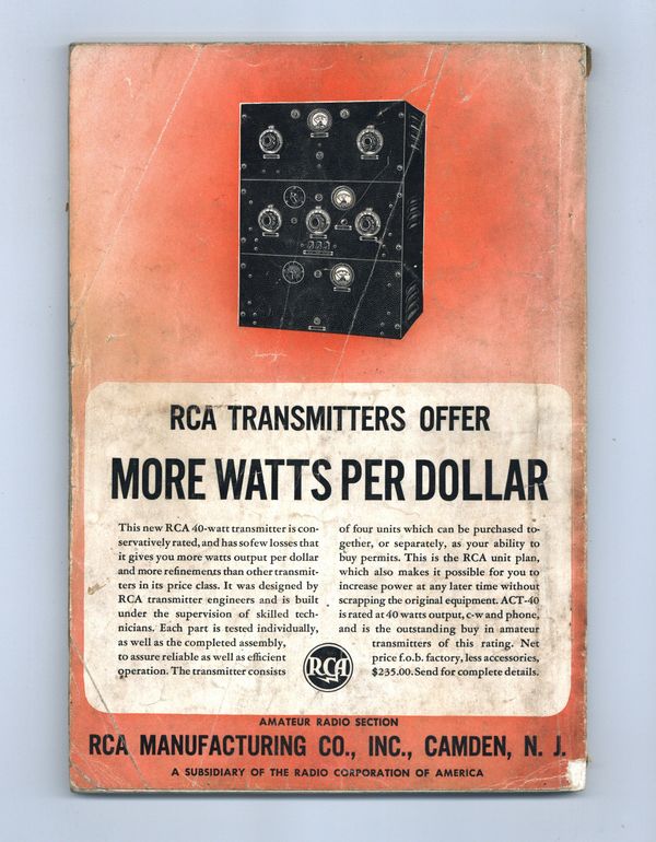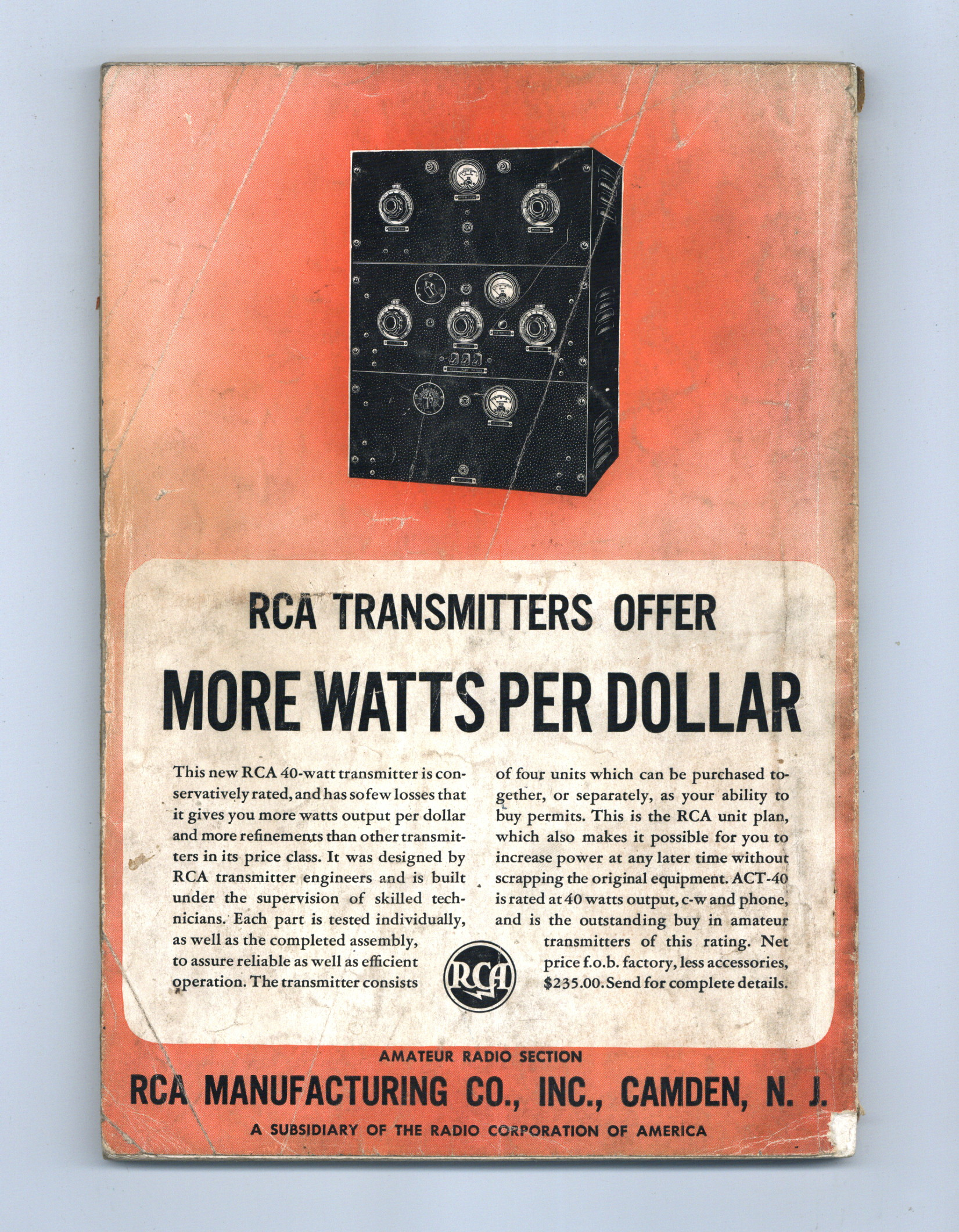 Published Feb 1936 by American Radio Relay League, Inc..$9.00- Front cover detached 5%. Back cover detached 5%. Staple rust: Slight.
