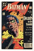 First printing. Newsstand Edition. Cover art by Mike Mignola. "A Death in the Family" part 3 of 4, script by Jim Starlin, pencils by Jim Aparo, inks by Mike DeCarlo; Death of Sheila Haywood; Burial of Sheila Haywood and Jason Todd; The Joker becomes the Iranian Ambassador to the U.N. Results of Phone Poll as to whether Robin dies this issue or not. NOTE: Most issues from 397-432 were reprinted in 1989 and sold in multipacks. These 2nd and 3rd prints have back cover ads dated 1989. 36 Pages, Full Color. Cover price $0.75.