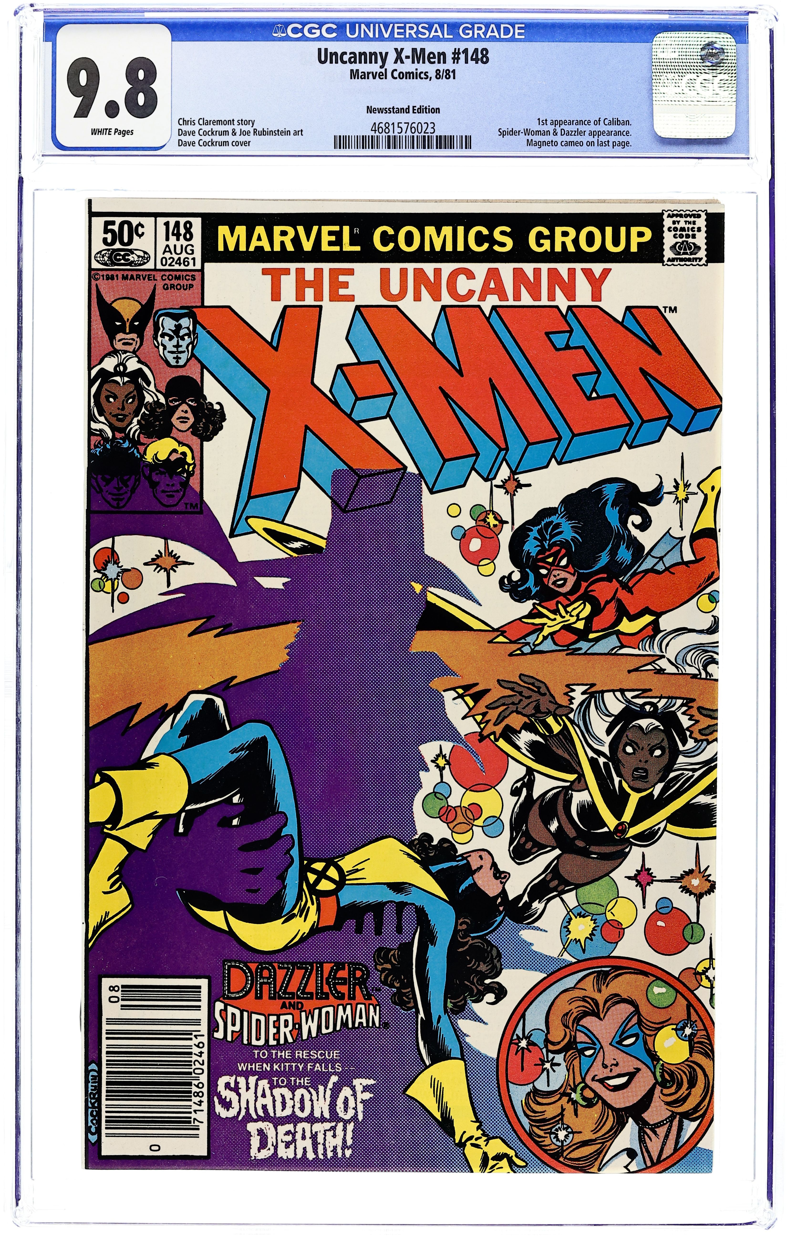 Newsstand Edition. "Cry, Mutant!" Guest-Starring Spider-Woman (Jessica Drew) and Dazzler. Story by Chris Claremont. Art by Dave Cockrum and Joe Rubinstein. Cyclops and Lee continue to explore the mysterious citadel. Plus, when a mysterious mutant attempts to kidnap Kitty, Storm must team-up with Spider-Woman and Dazzler to save her. Cover price $0.50.