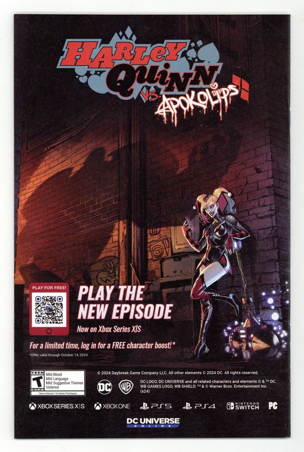 Starts Jul 4 Written by Scott Snyder. Art by Nick Dragotta. Cover by Nick Dragotta. BATMAN LEGEND SCOTT SNYDER AND ICONIC ARTIST NICK DRAGOTTA TRANSFORM THE DARK KNIGHT'S TALE FOR THE MODERN AGE! Without the mansion...without the money...without the butler...what's left is the Absolute Dark Knight! 44 pages, full color. Rated T+ Cover price $4.99.
