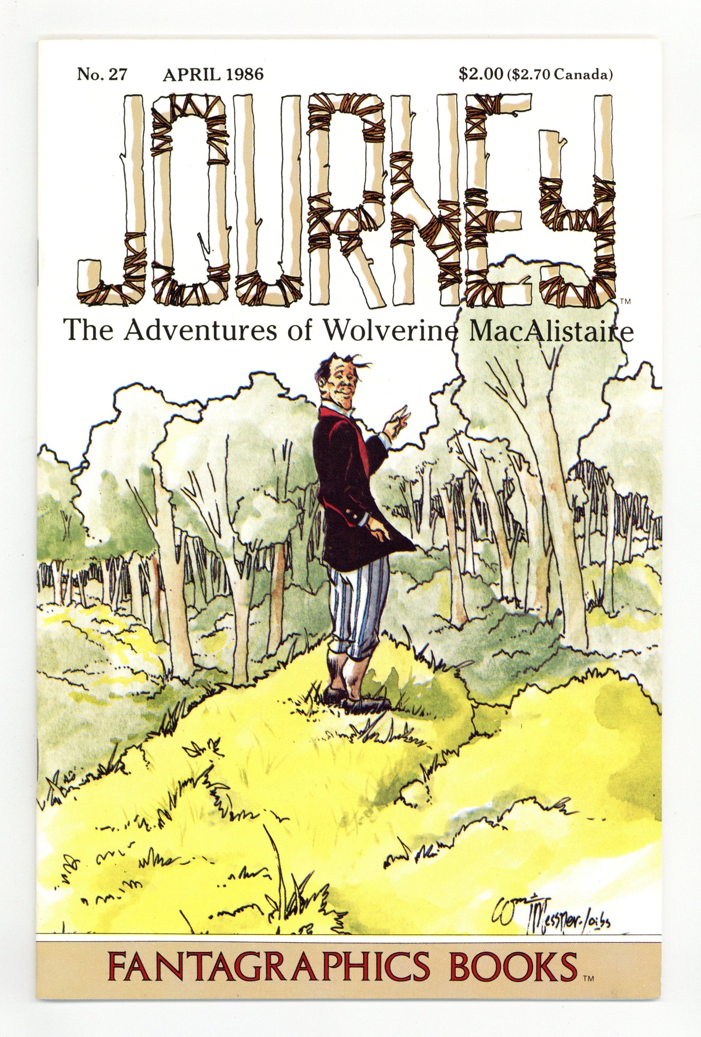 Published Apr 1986 by Aardvark-Vanaheim.$15.00The adventures of Joshua Wolverine MacAlistaire, 19th-century American frontiersman. MacAlistaire leaves New Hope and Elmer behind. Story, art and cover by William Messner-Loebs. Backup story about the Hands Across America fundraising event. Final issue of the series; MacAlistaire returned in Journey: Wardrums in 1987. Black and white; 32 pages. Cover price $2.00. Cover price $2.00.