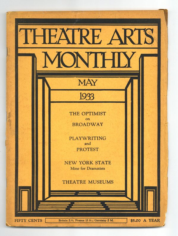 Published May 1933 by Theatre Arts, Inc..$12.00Theatre Arts is legendary for its thorough and insightful coverage of the stage, both in American and England. Less well-known is the fact that TAM also provided some outstanding coverage of motion pictures, Broadway and Hollywood. 8.5" x 11", 88 pages, B&W. Cover price $0.50.