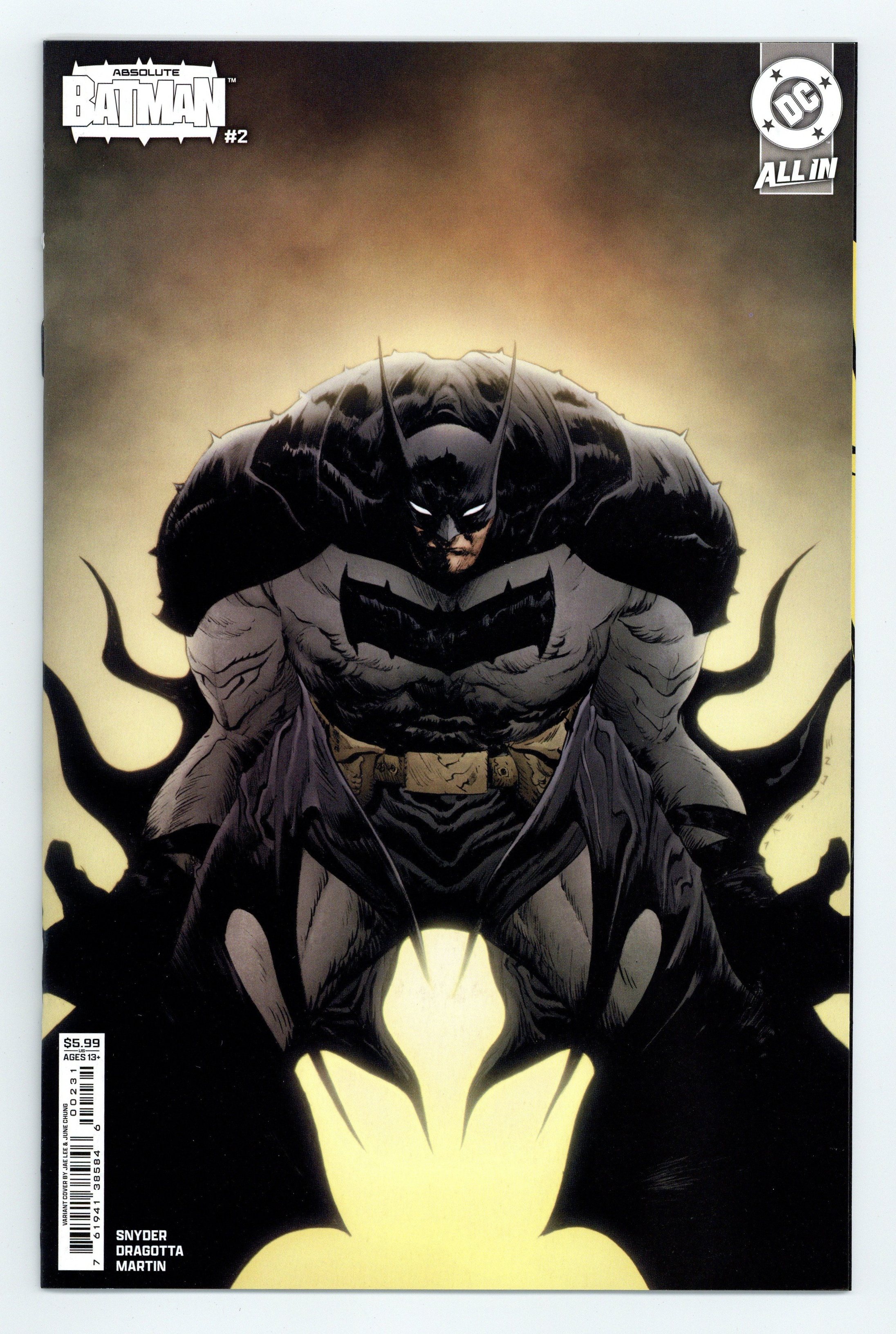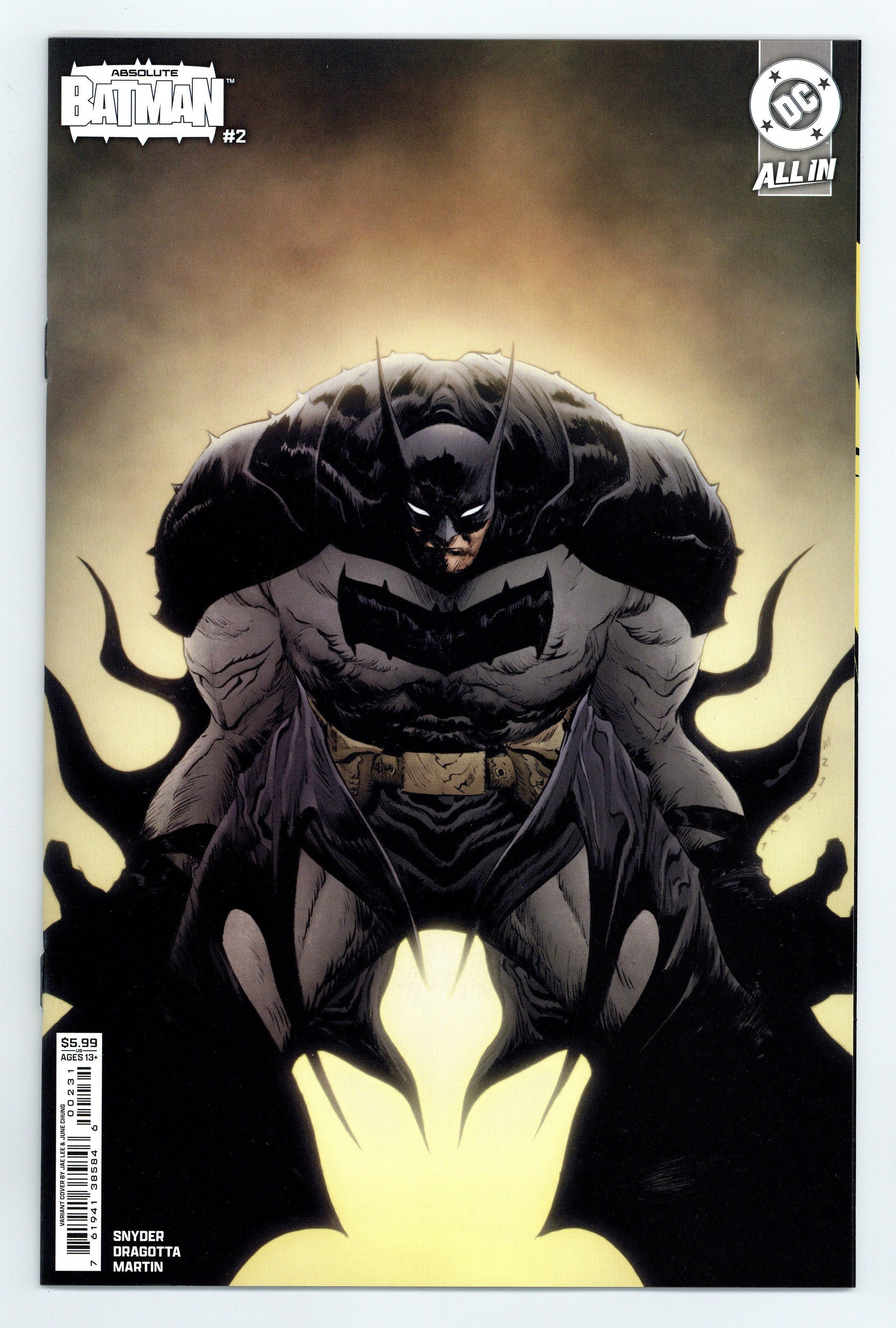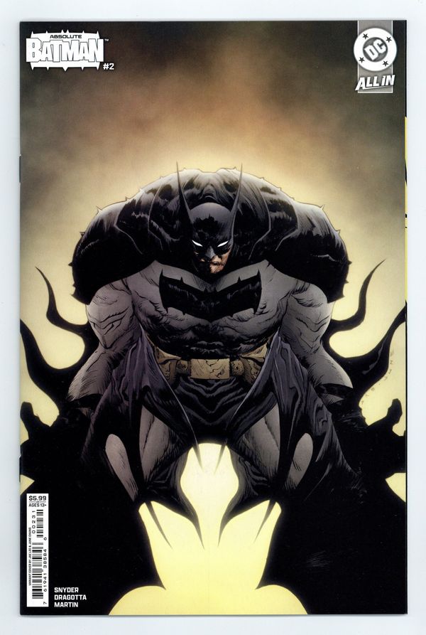 $19.75Written by Scott Snyder. Art by Nick Dragotta. Cover by Jae Lee & June Chung. SNYDER AND DRAGOTTA'S BRAND-NEW TAKE ON THE DARK KNIGHT RAMPAGES ON! Batman was born out of violence - a horrible tragedy that shaped the trajectory of his future. But when a vigilant MI6 agent starts tracking the lonely life of Bruce Wayne, he discovers the interconnectivity between a hero's shell life and the many layers of the Black Mask Gang. It's Batman versus Alfred Pennyworth! 32 pages, full color. Rated T+ Cover price $5.99.