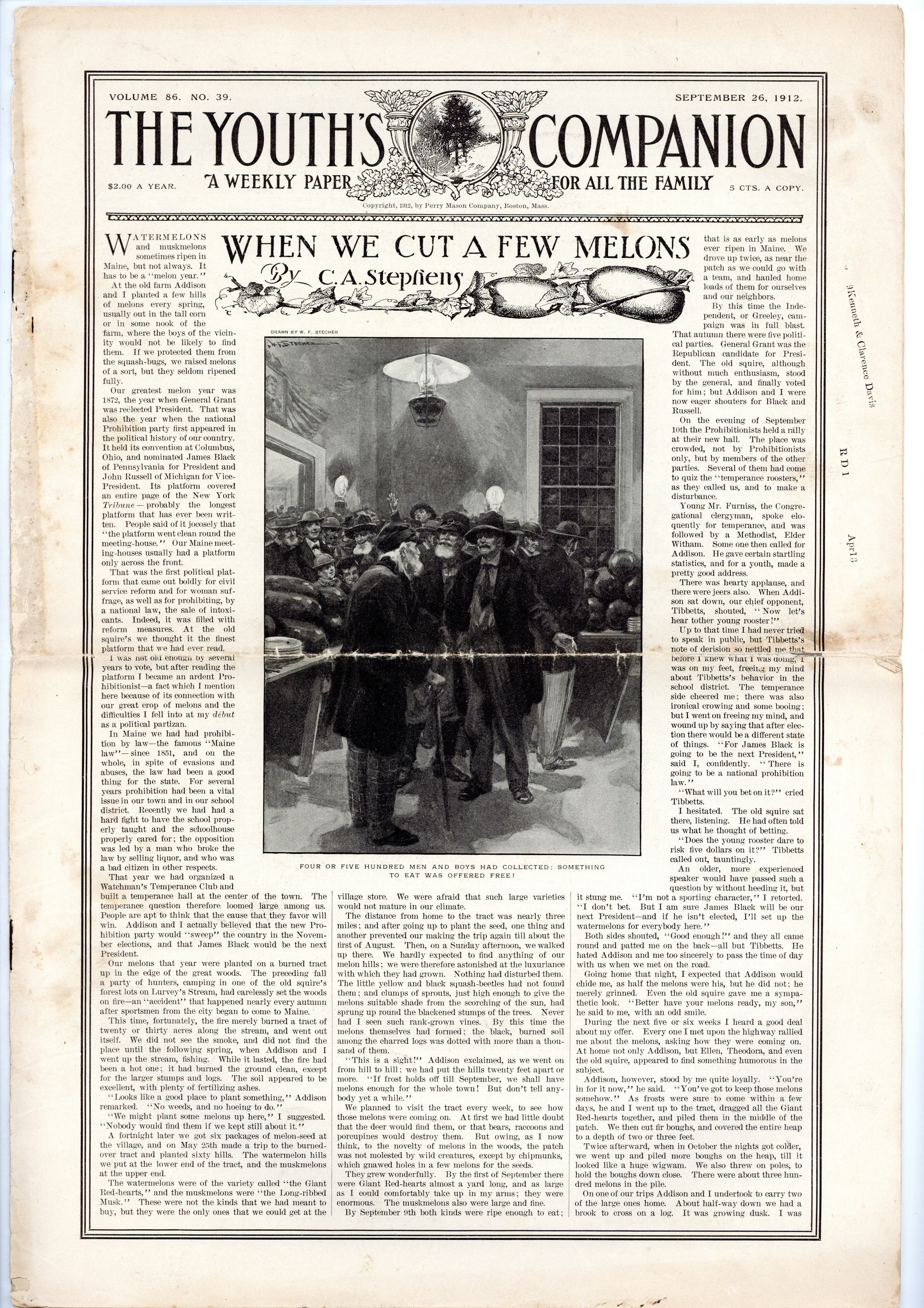 Volume 86, Issue 39 - September 26, 1912. 11.5" x 16.5", 12 pages, B&W Newsprint. Cover price $0.05.