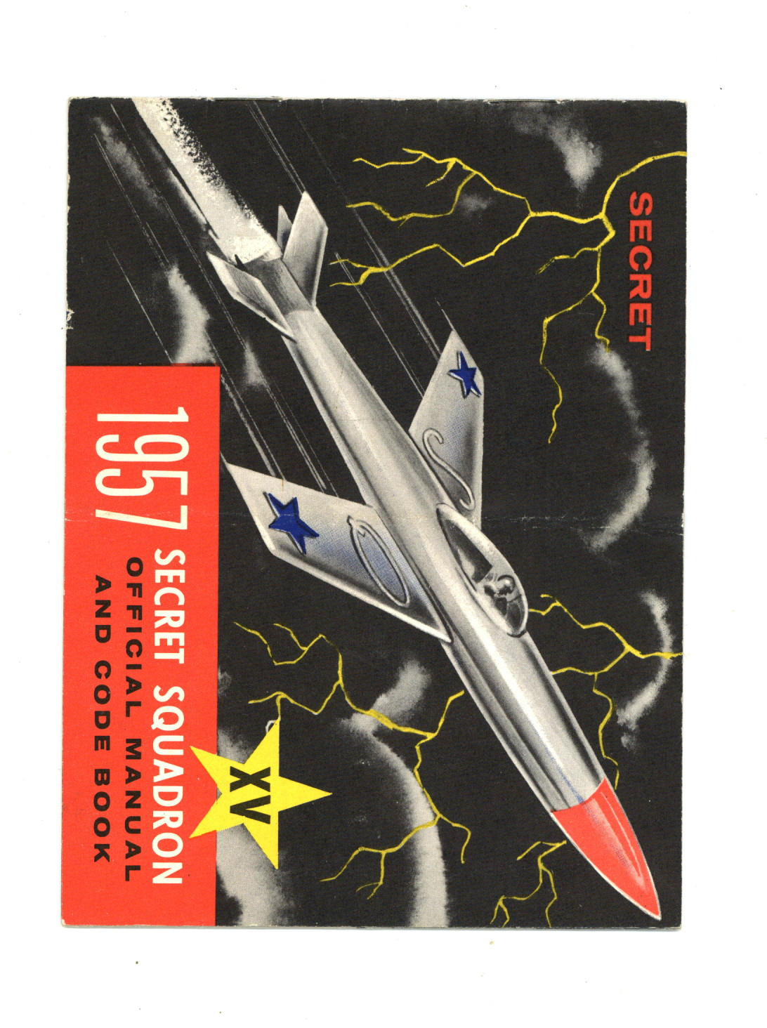 $185.001957. Captain Midnight's Secret Squadron's Official Manual and Code Book shares information on encoding and decoding the Secret Squadron's messages and signals. 4.5" x 6", 12 pages, full color