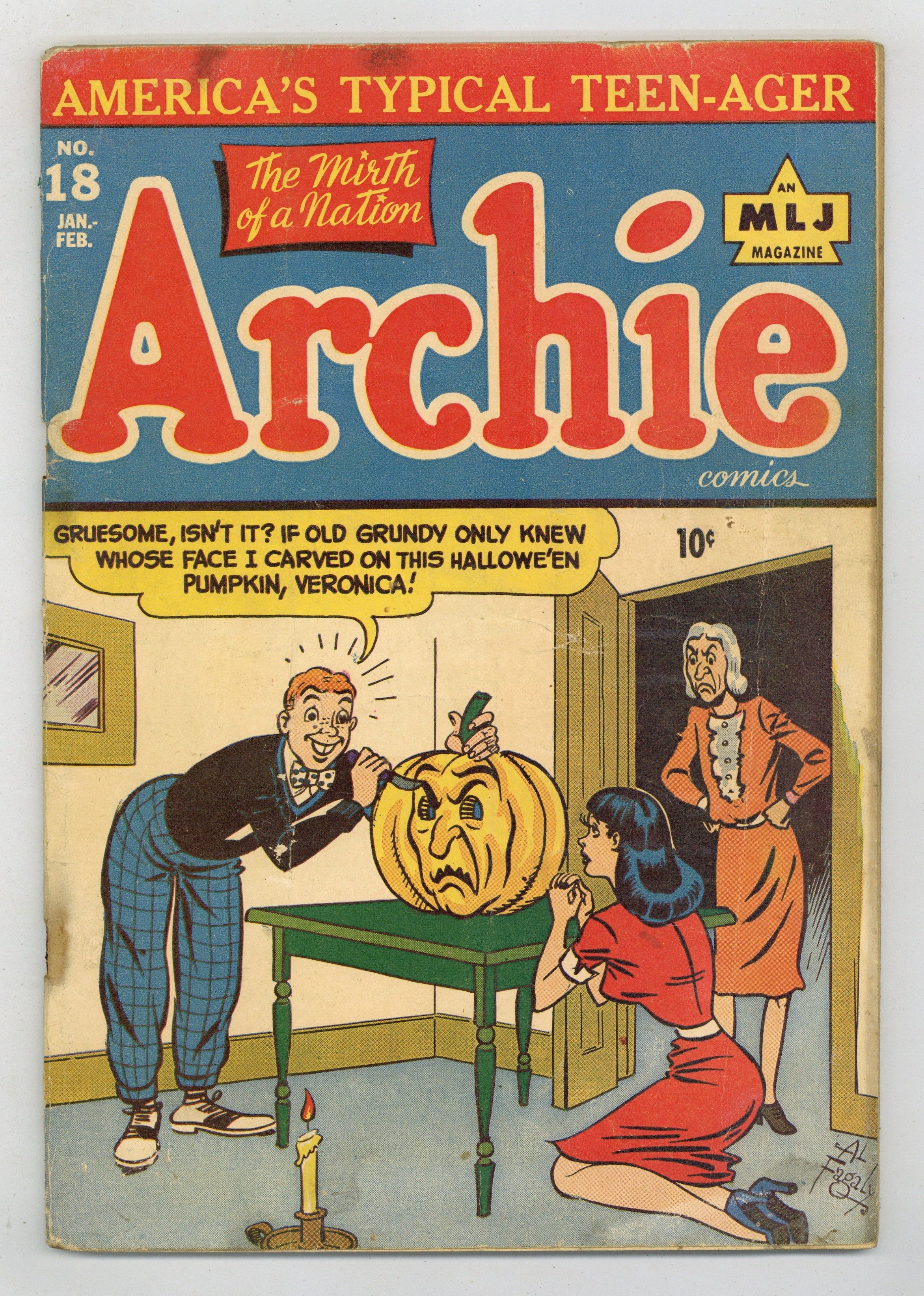 Tags: ArchiePublished Feb 1946 by Archie Publications.$139.00- Chew spot to front cover and first few pages, centerfold detached at one staple.