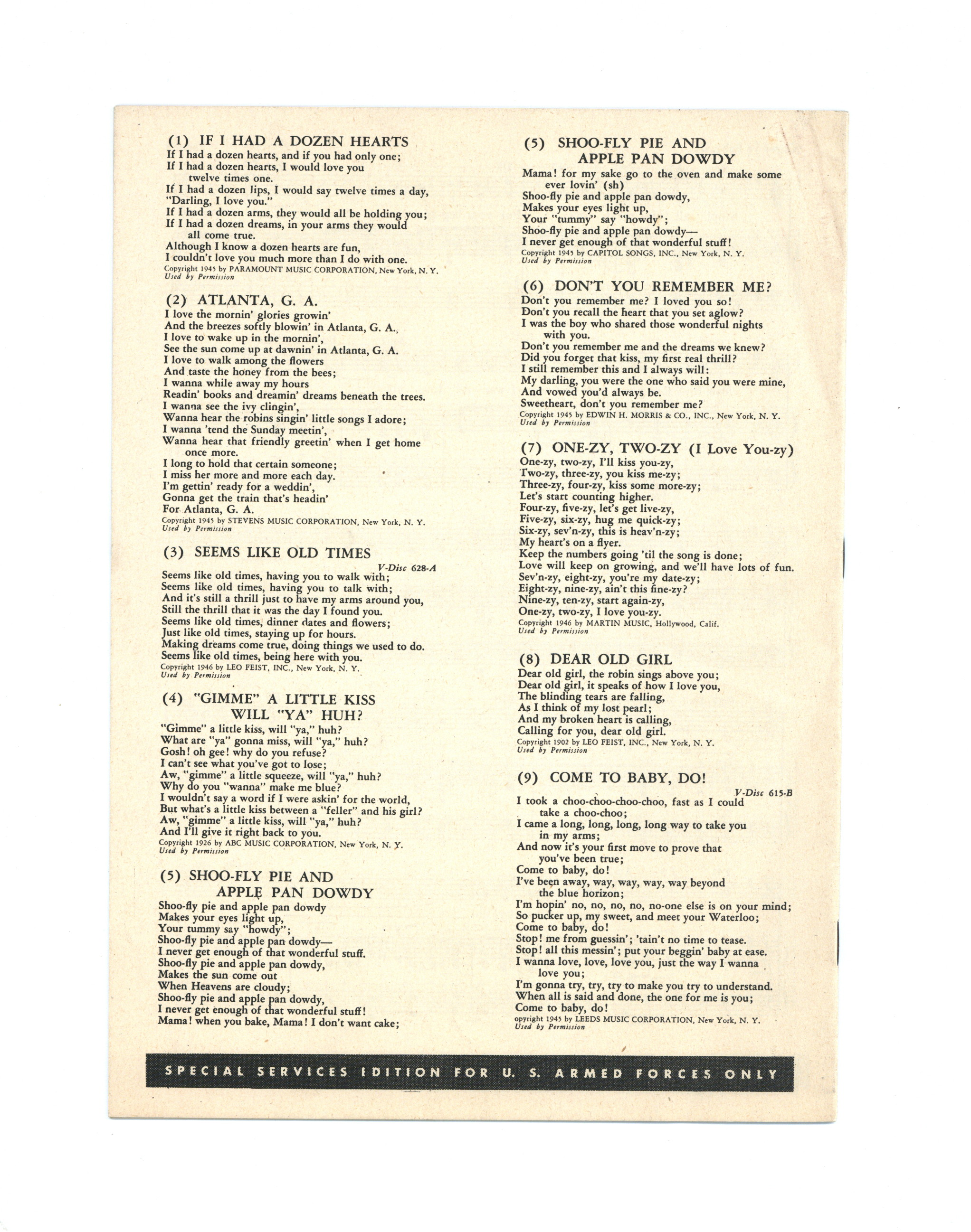 $51.00Cover art by Frank Robbins. Not For Sale and distributed only to the U.S. Armed Forces. Sheet music. 10 1/2-in. x 7 1/2-in. 20 Pages B&W.